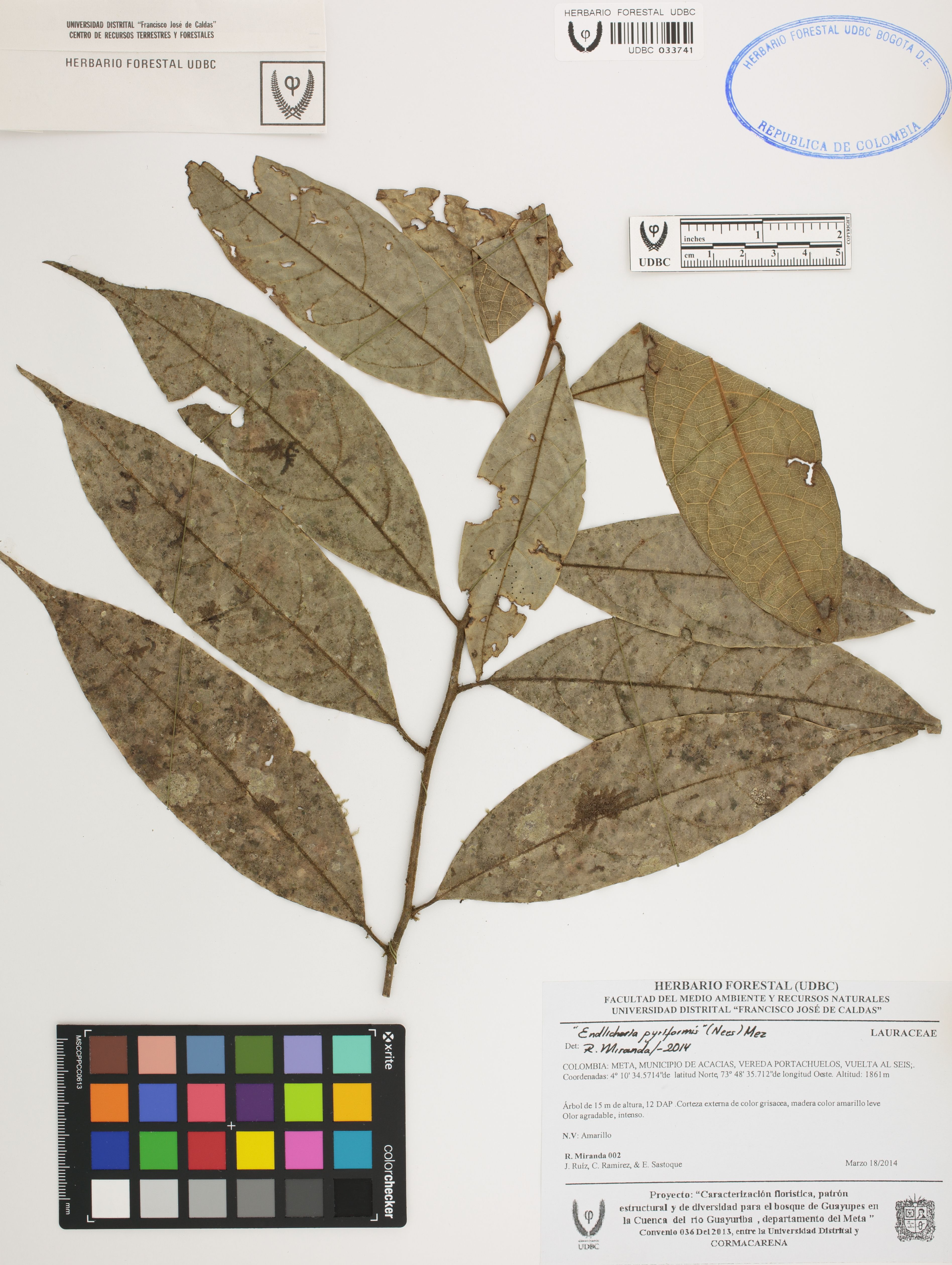 Fotografía del ejemplar Miranda, R. 2, determinado como Endlicheria paniculata en el año 2022