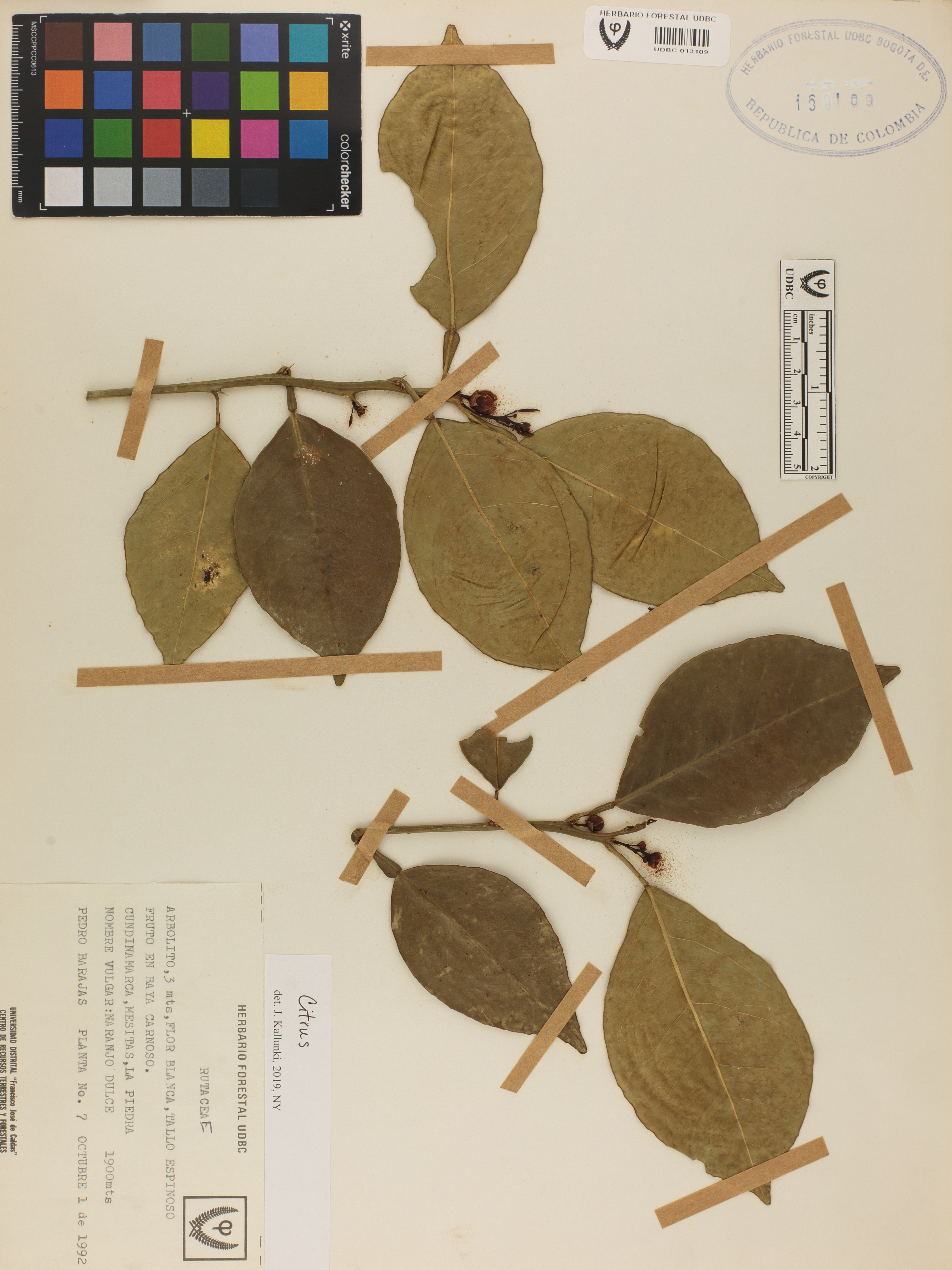 Fotografía del ejemplar Barajas, P. 7, determinado como Citrus sp. en el año 2019