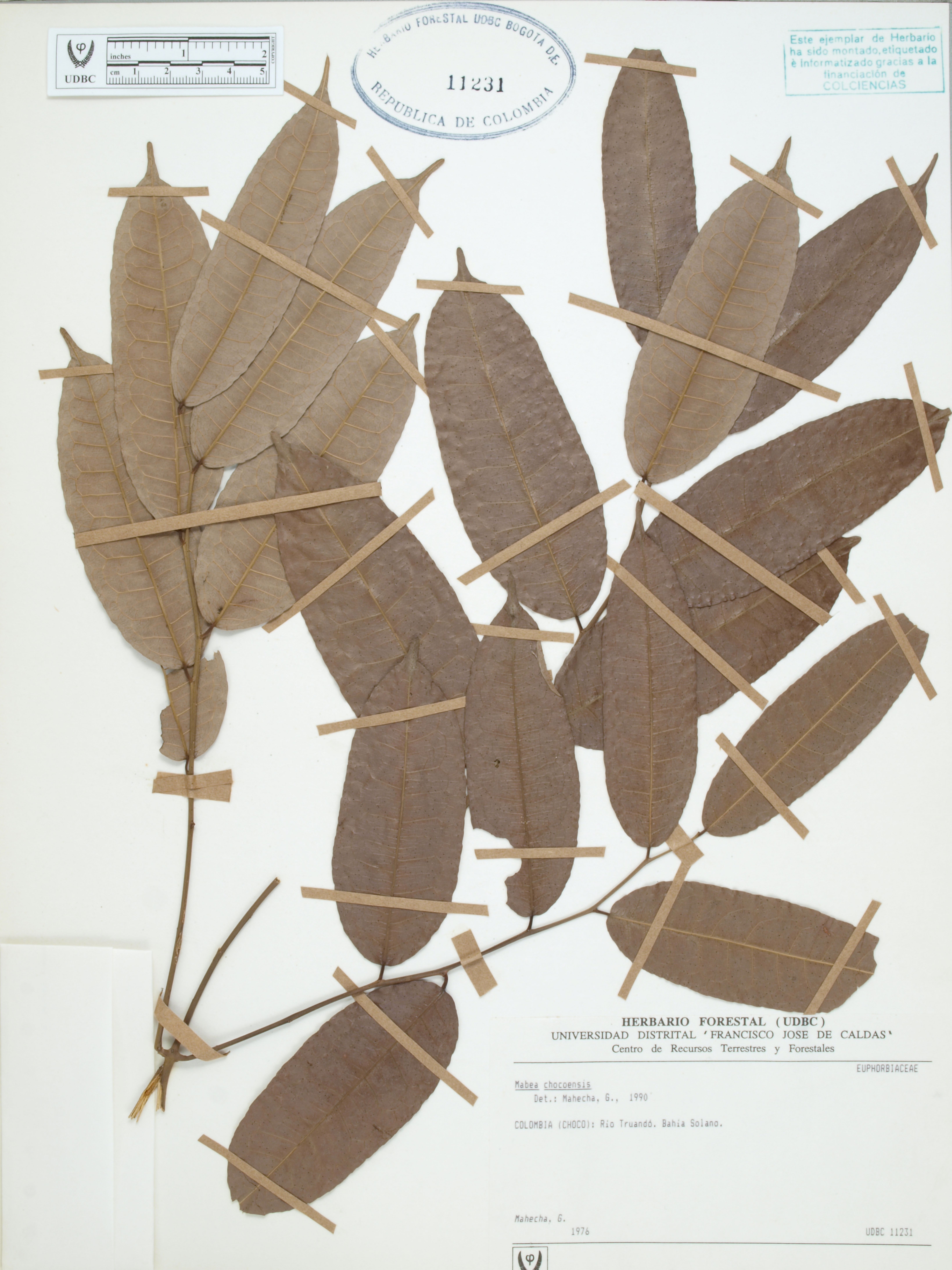 Fotografía del ejemplar Mahecha, G., determinado como Mabea chocoensis