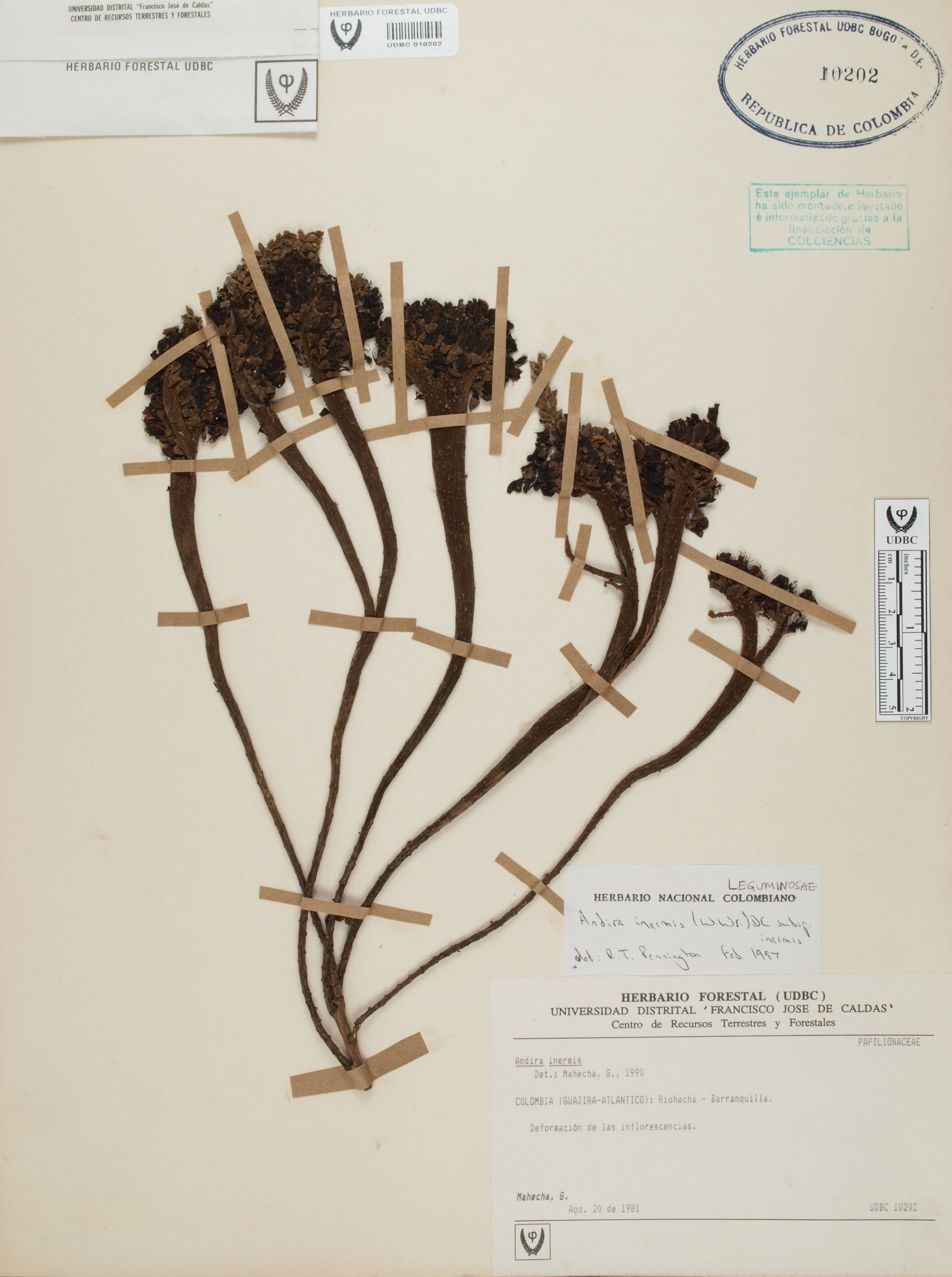 Fotografía del ejemplar Mahecha, G., determinado como Andira inermis subsp. inermis en el año 1997