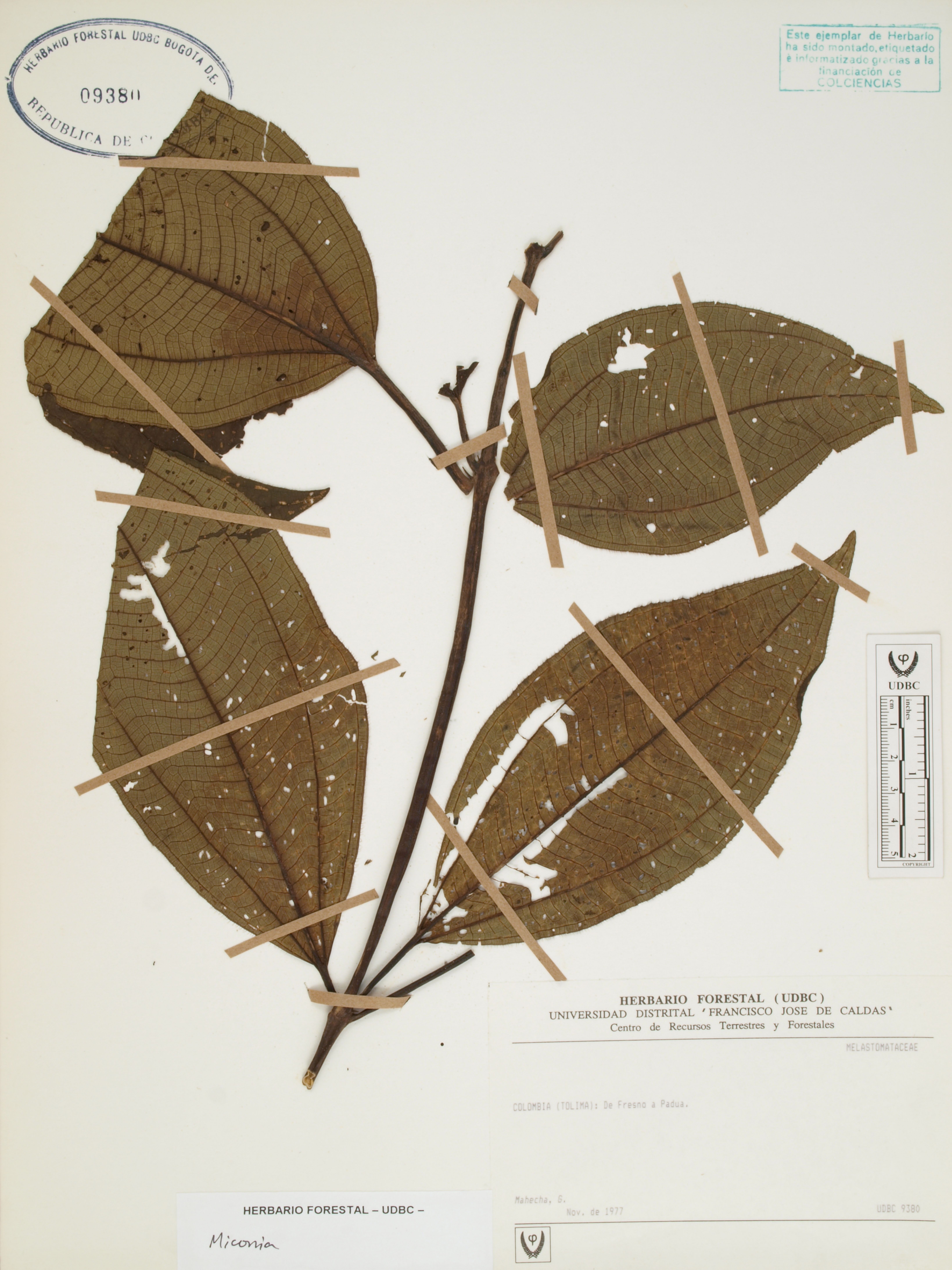 Fotografía del ejemplar Mahecha, G., determinado como Miconia sp. en el año 2007