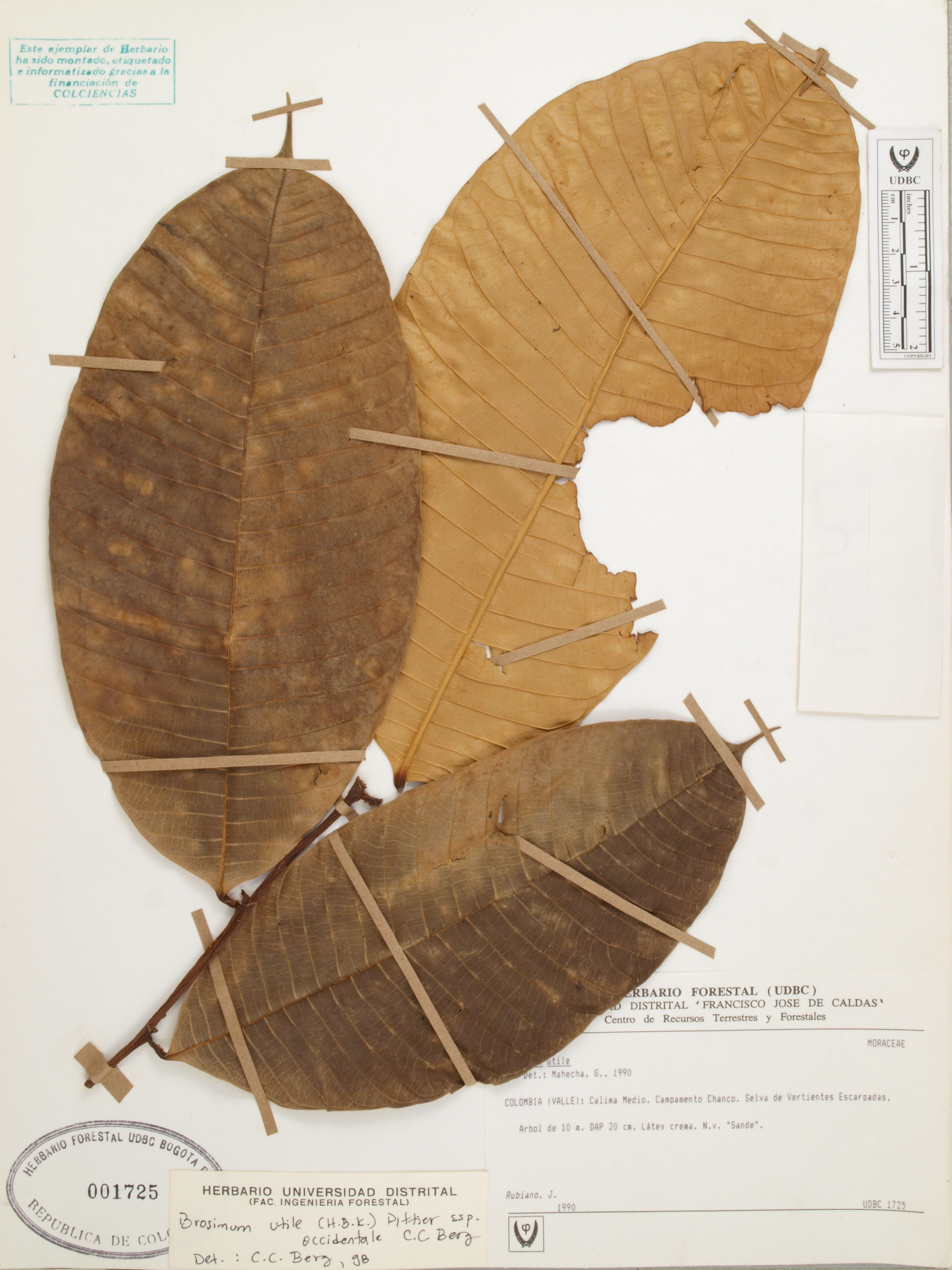 | dc.description | Fotografía del ejemplar Rubiano, J., determinado como Brosimum utile subsp. occidentale en el año 1998 | |