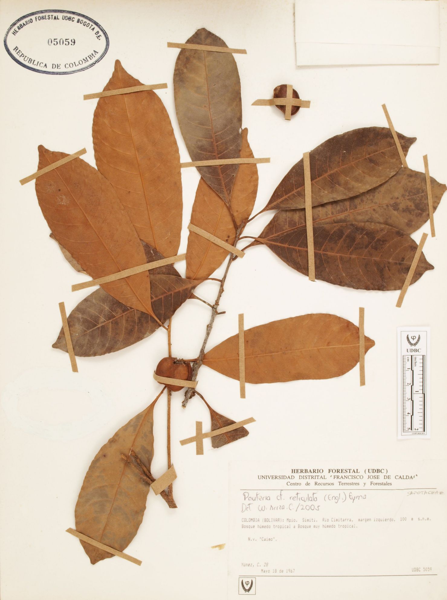 Fotografía del ejemplar Yúñez, C. 28, determinado como Pouteria reticulata en el año 2005