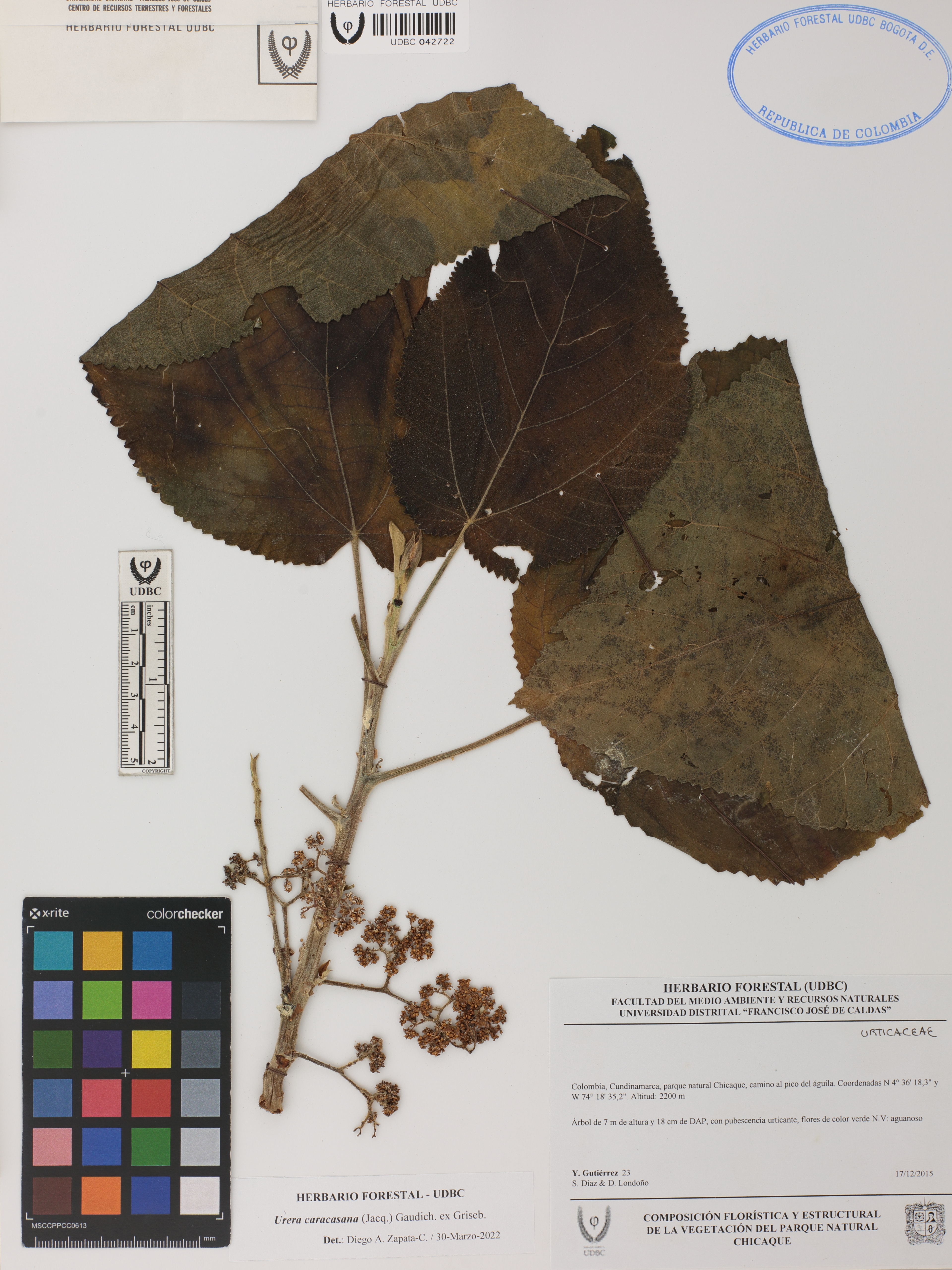 Fotografía del ejemplar Gutiérrez, Y. 23, determinado como Urera caracasana en el año 2022