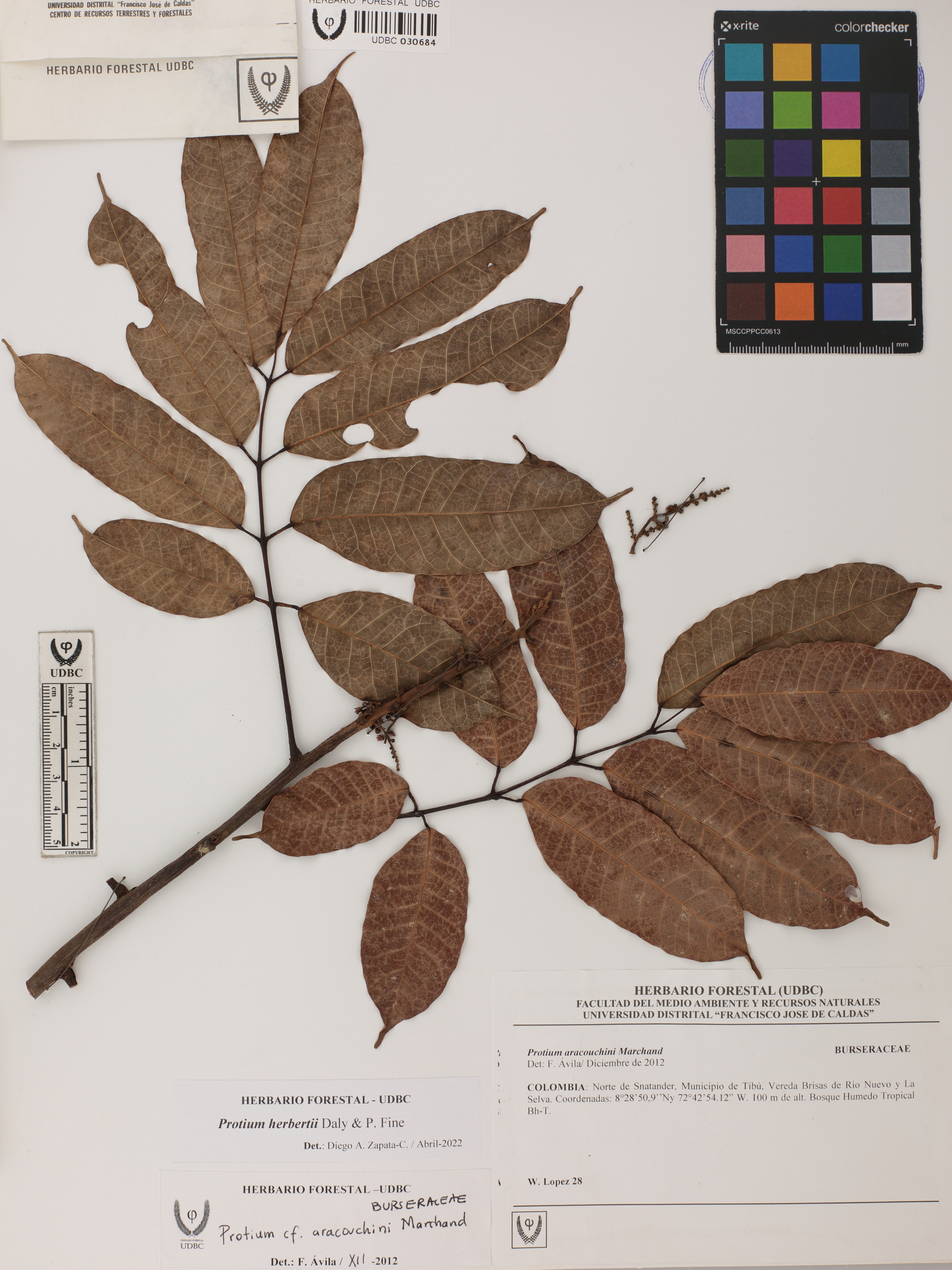 Fotografía del ejemplar López, W. 28, determinado como Protium herbertii en el año 2022
