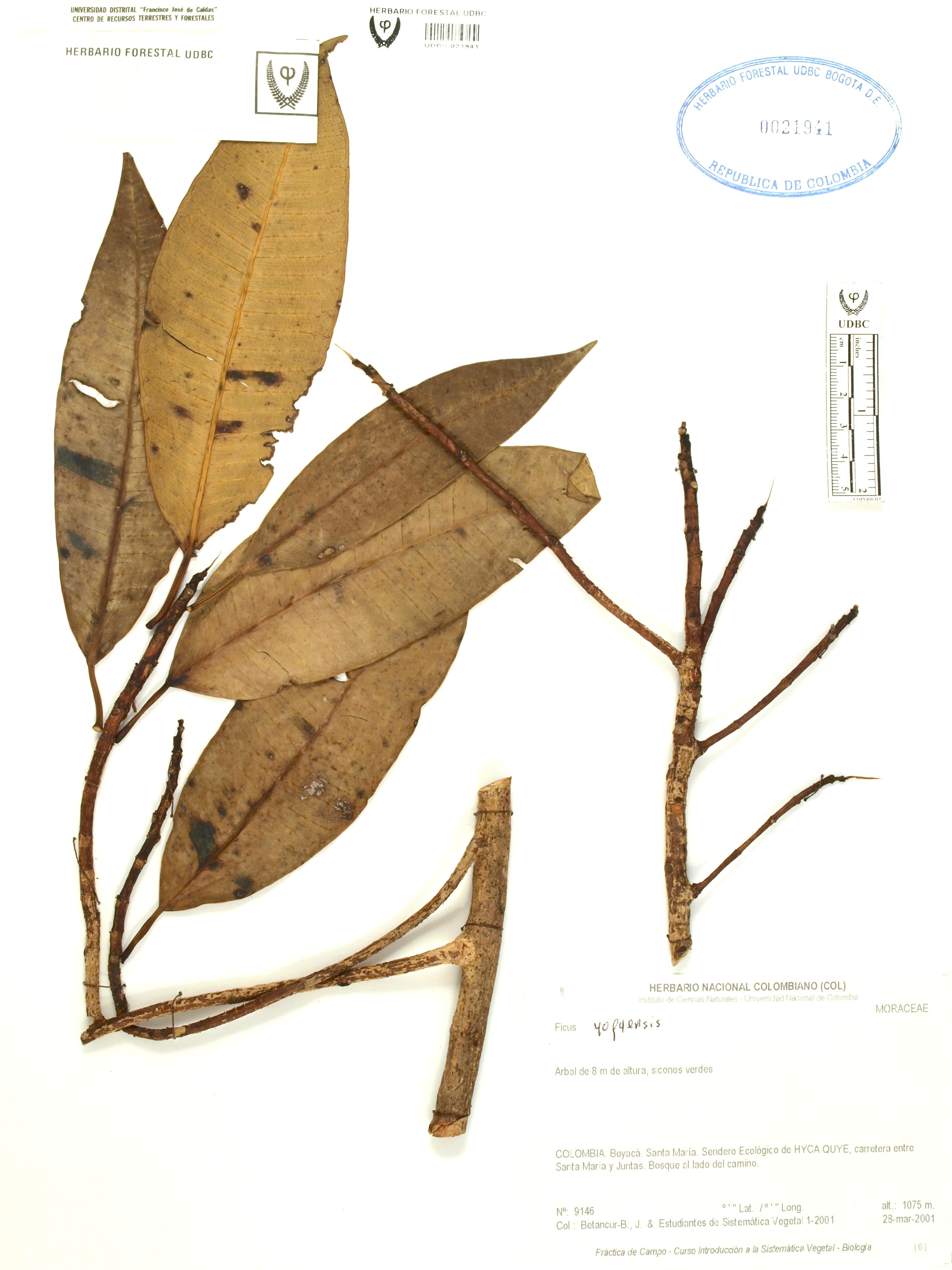 Fotografía del ejemplar Betancur, J. 9146, determinado como Ficus yoponensis