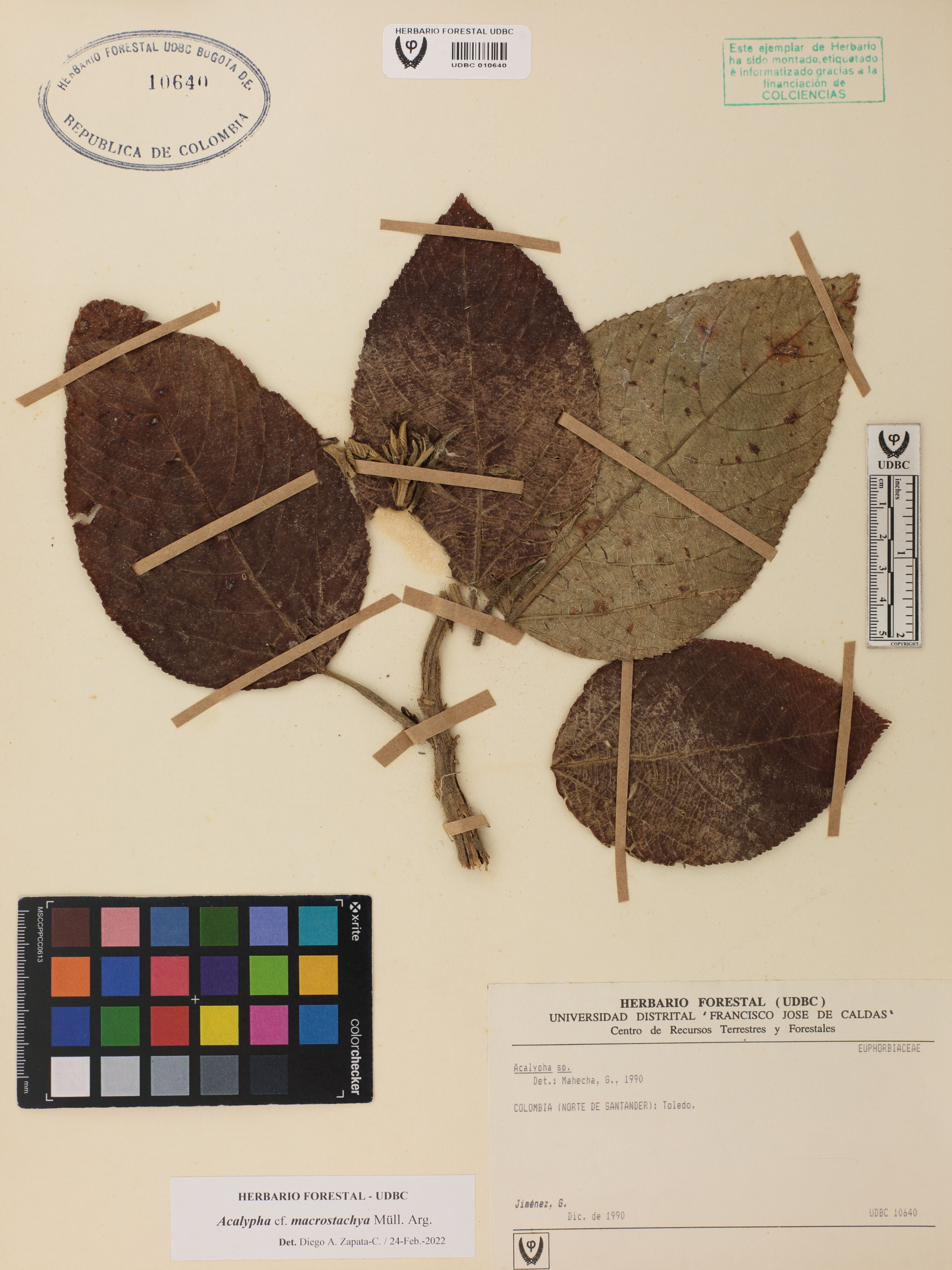 Fotografía del ejemplar Jiménez, G., determinado como Acalypha macrostachya en el año 2022