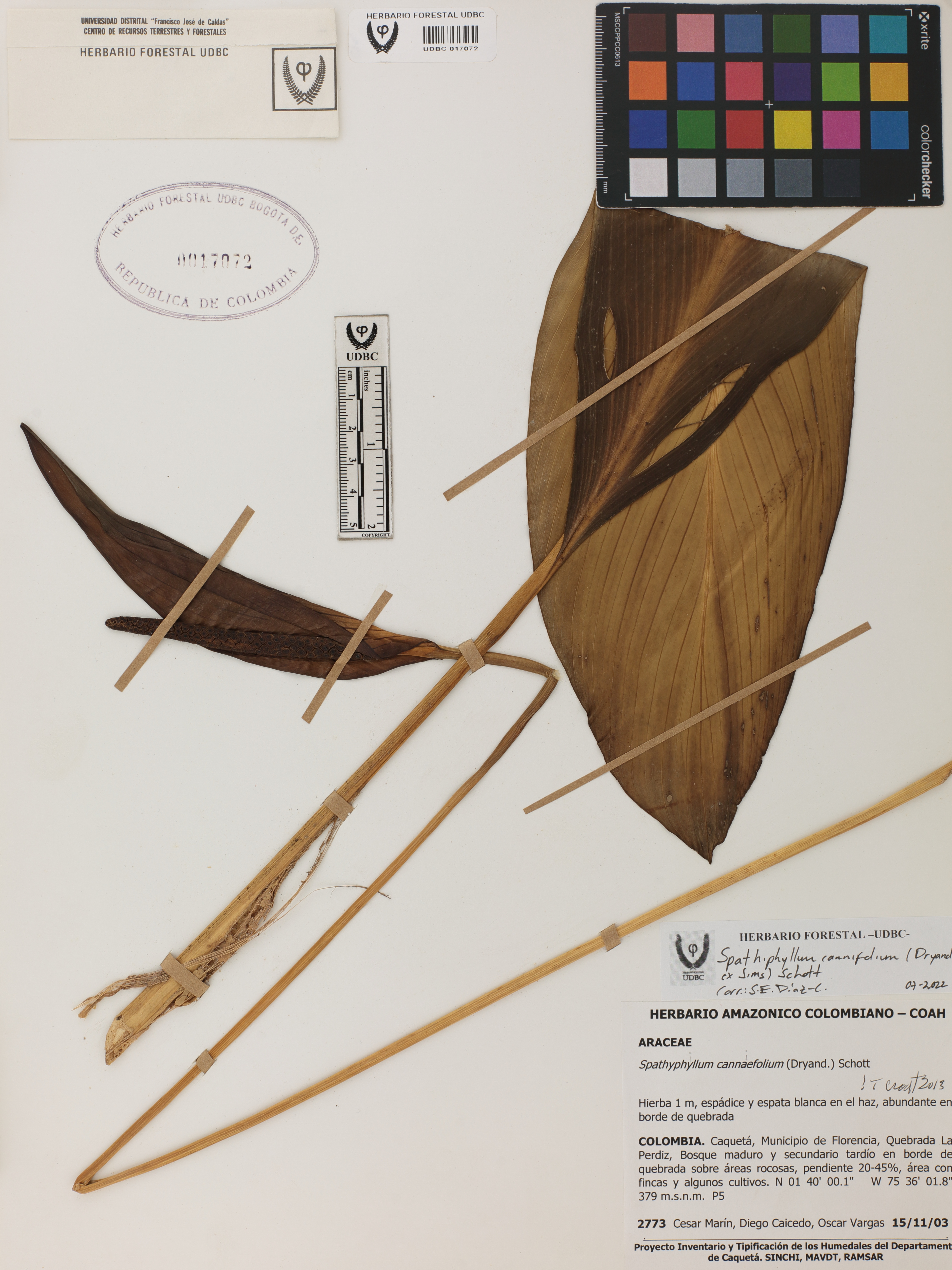 Fotografía del ejemplar Marín, C. 2773, determinado como Spathiphyllum cannifolium