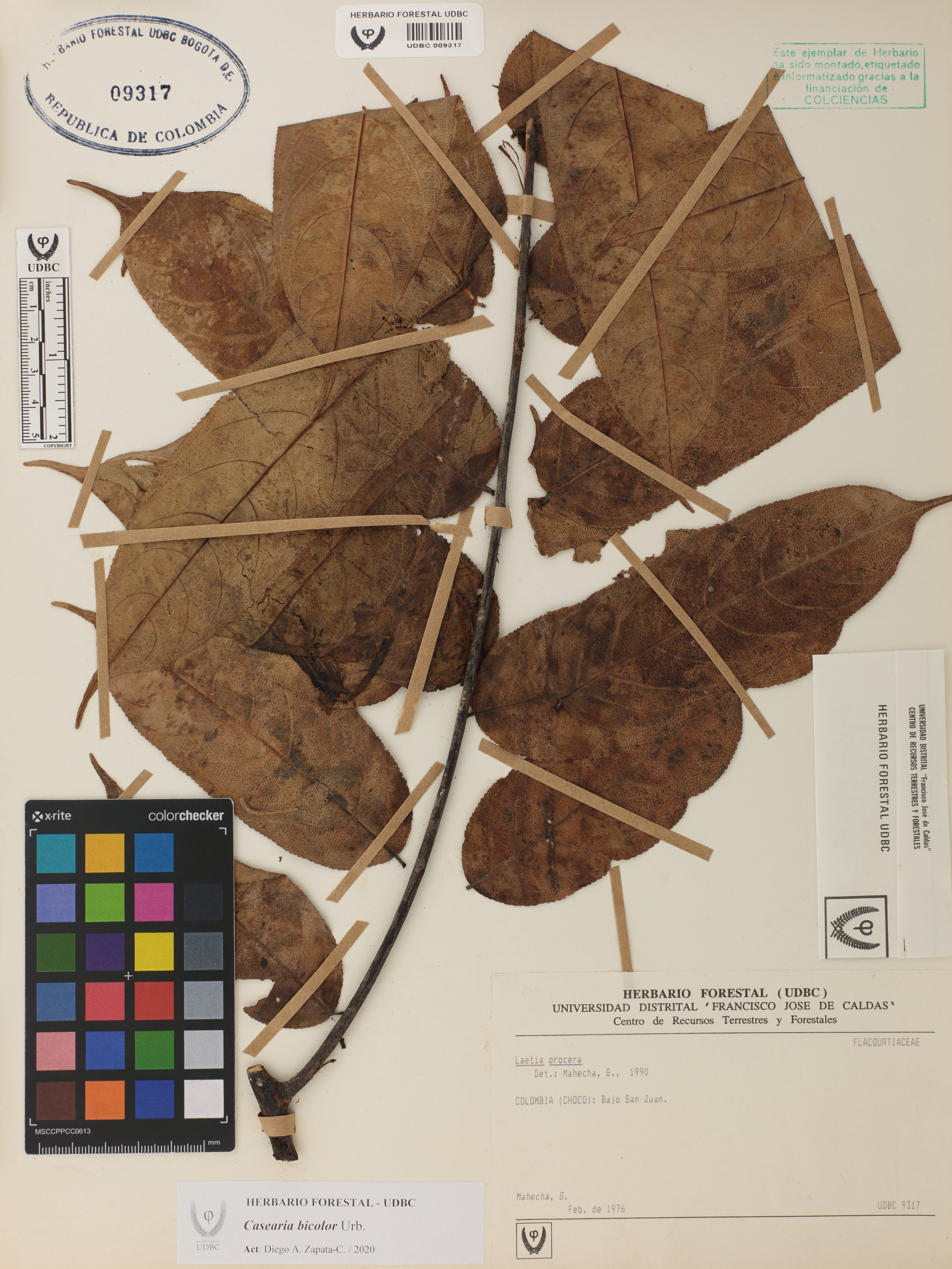 Fotografía del ejemplar Mahecha, G., determinado como Casearia bicolor en el año 1990