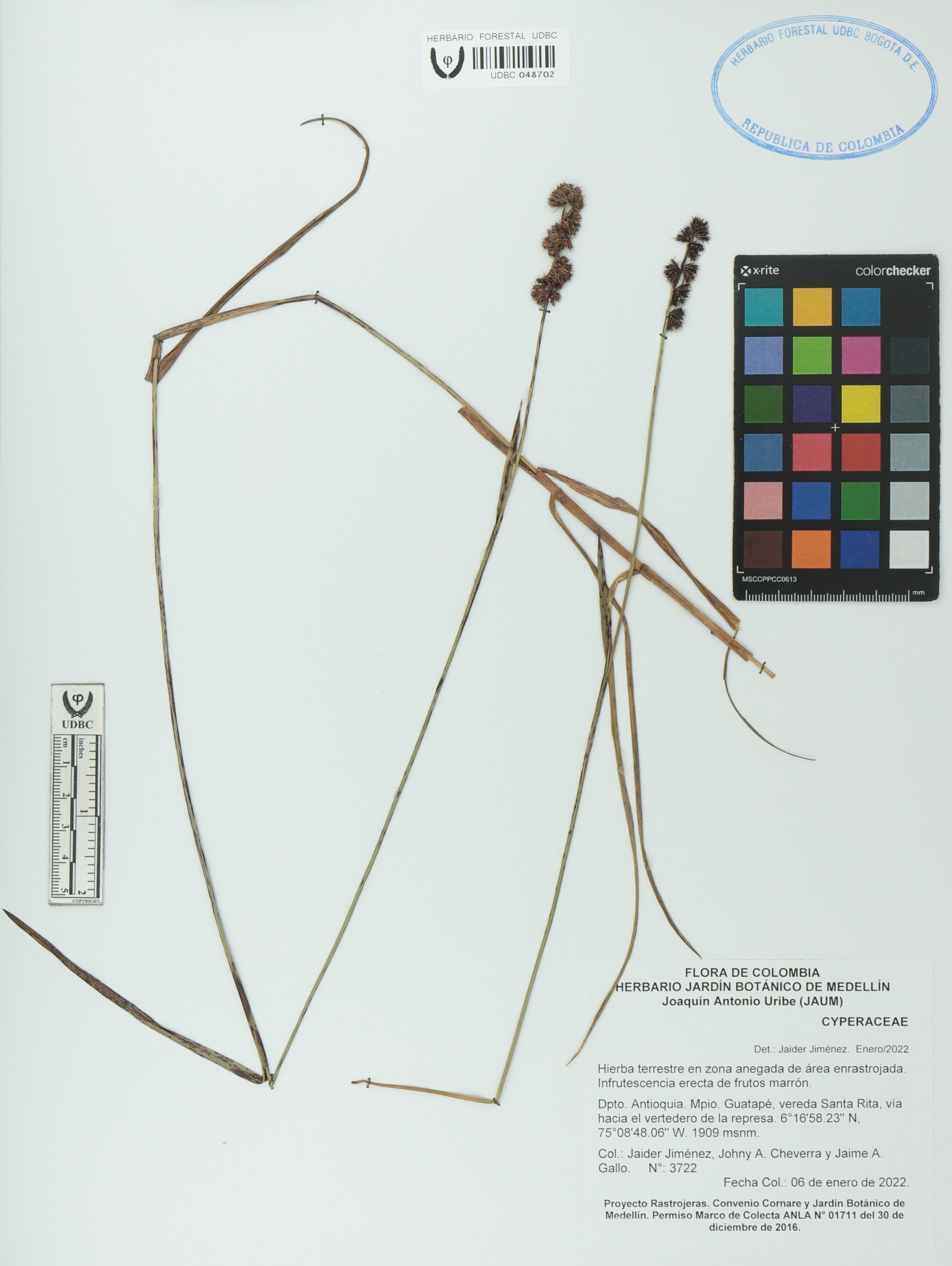 Fotografía del ejemplar Jiménez, J. 3722, determinado como Cyperaceae en el año 2022