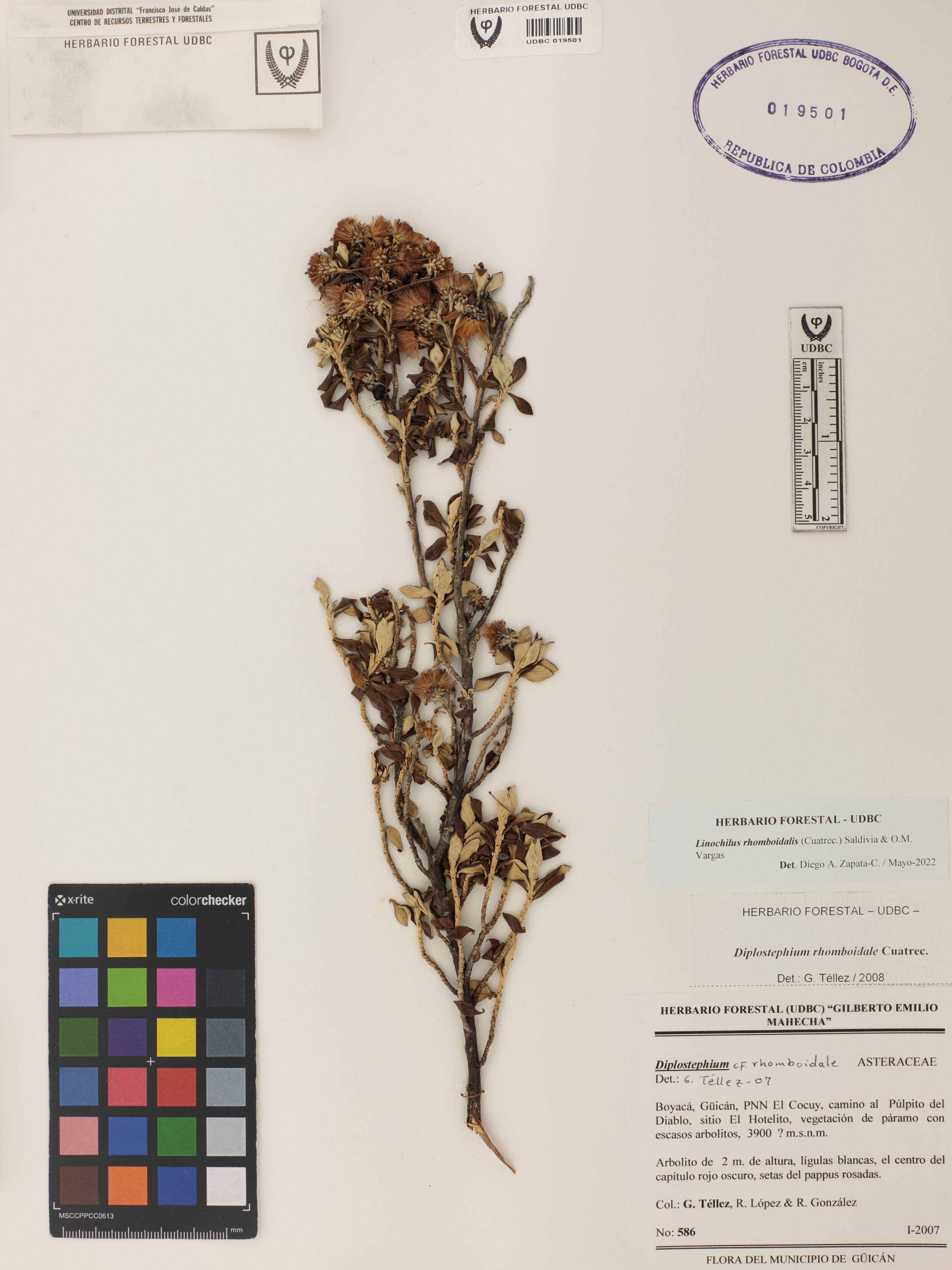 Fotografía del ejemplar Téllez, G. 586, determinado como Linochilus rhomboidalis en el año 2008