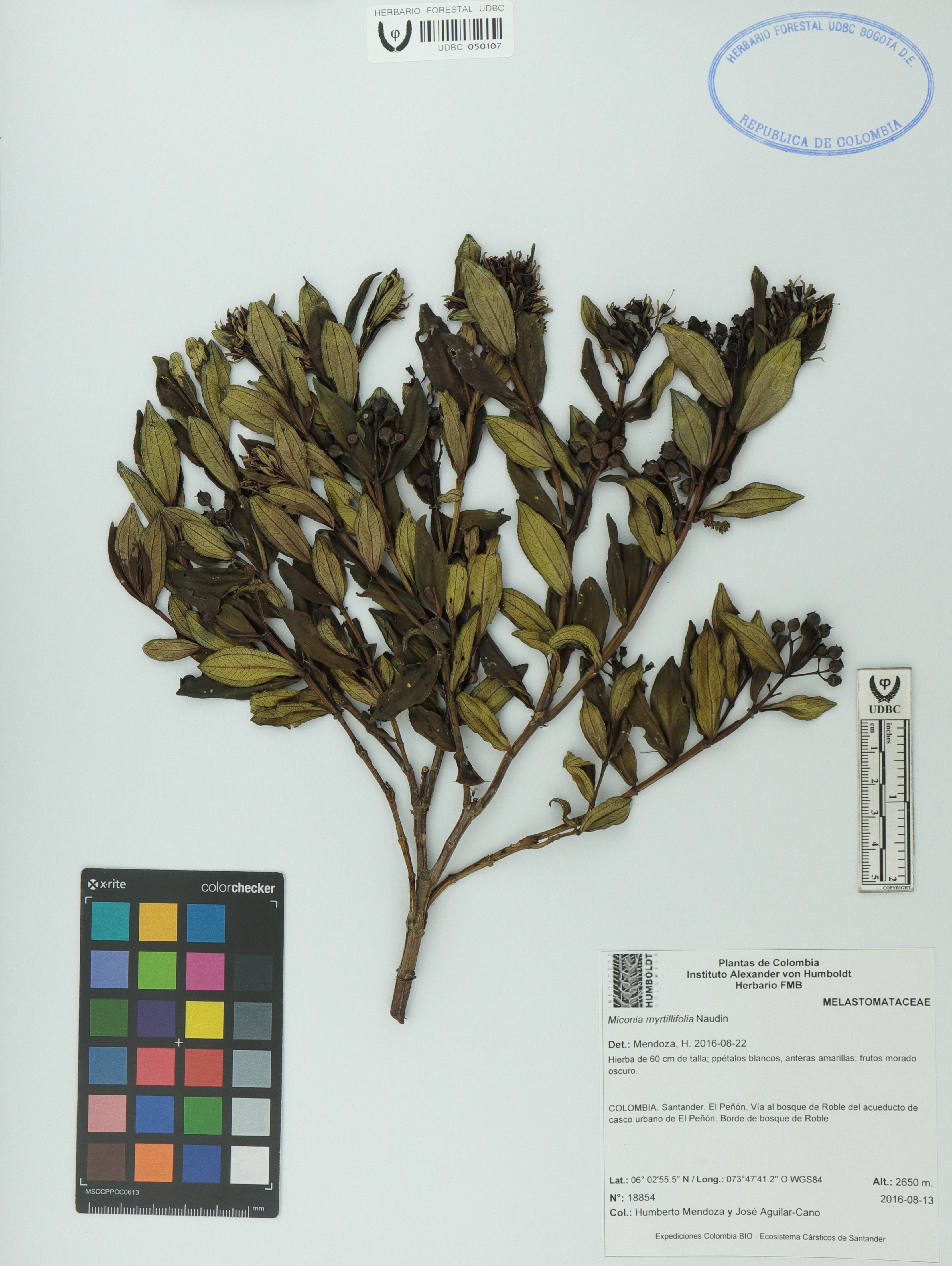 Fotografía del ejemplar Mendoza, H. 18854, determinado como Miconia myrtillifolia en el año 2016