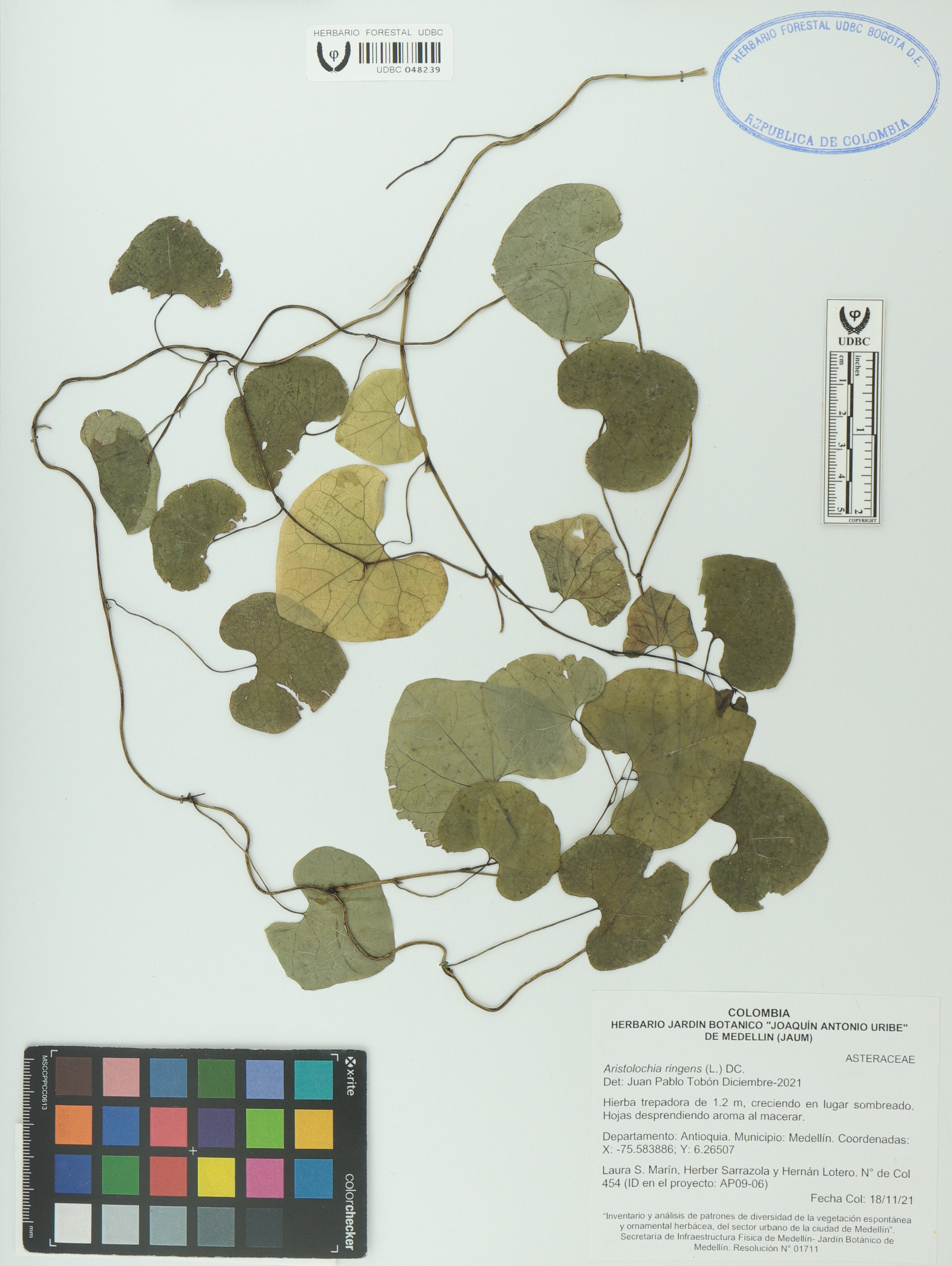 Fotografía del ejemplar Marín, L. 454, determinado como Aristolochia ringens en el año 2021
