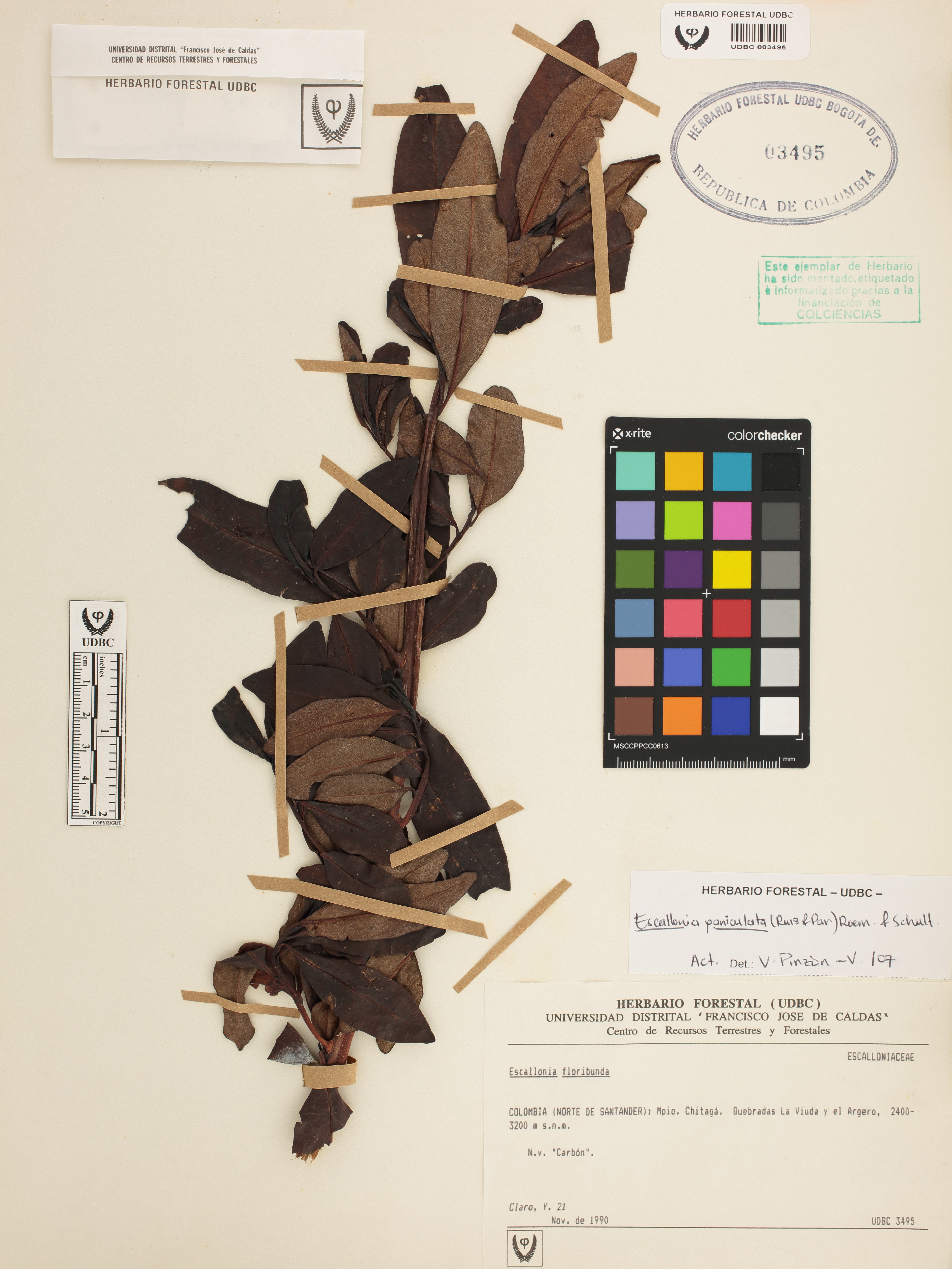 Fotografía del ejemplar Claro, Y. 21, determinado como Escallonia paniculata en el año 2007