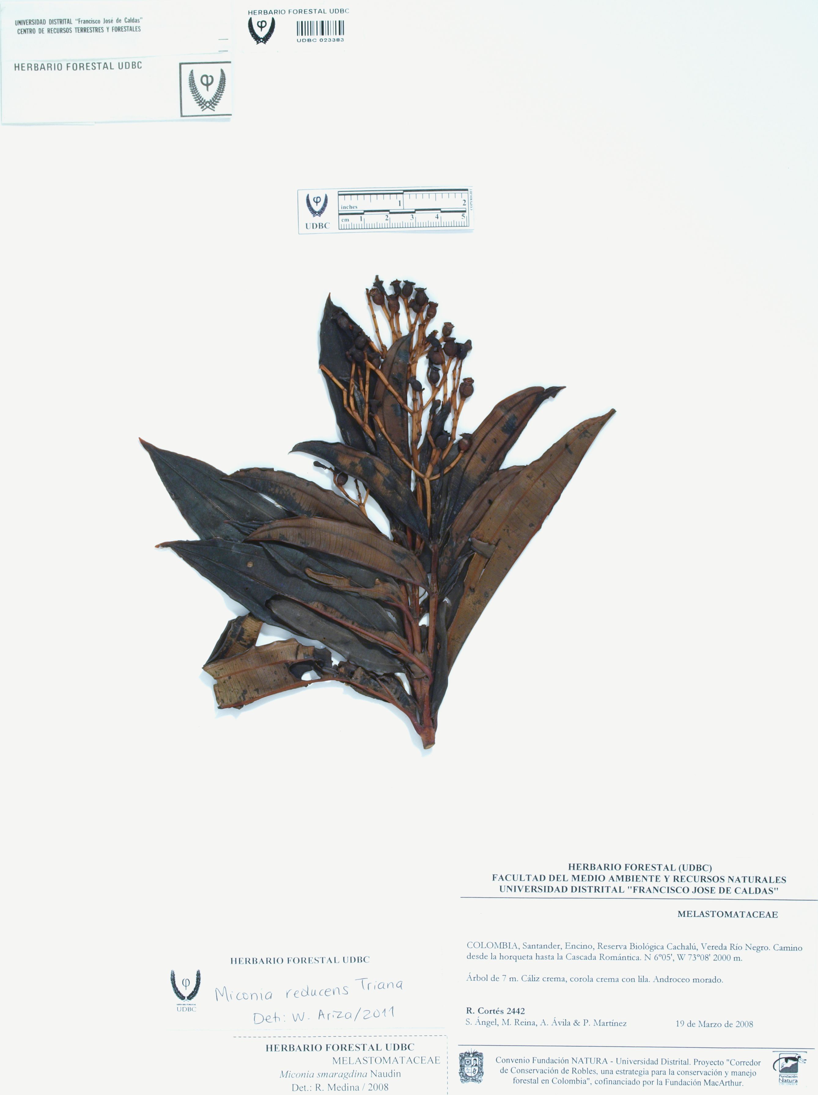 Fotografía del ejemplar Cortés-B., R. 2442, determinado como Miconia reducens en el año 2011