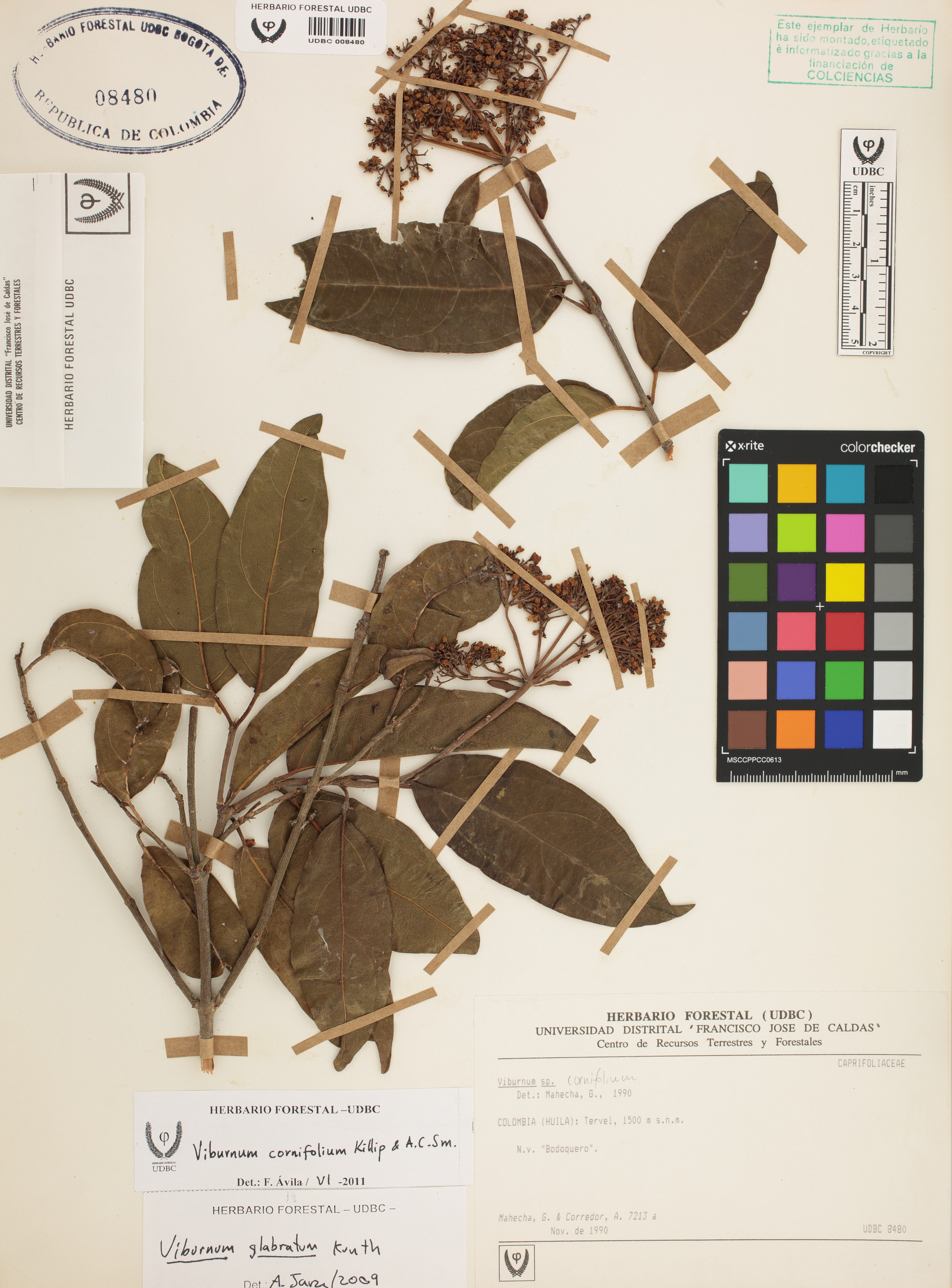 Fotografía del ejemplar Mahecha, G. 7213, determinado como Viburnum cornifolium en el año 2011