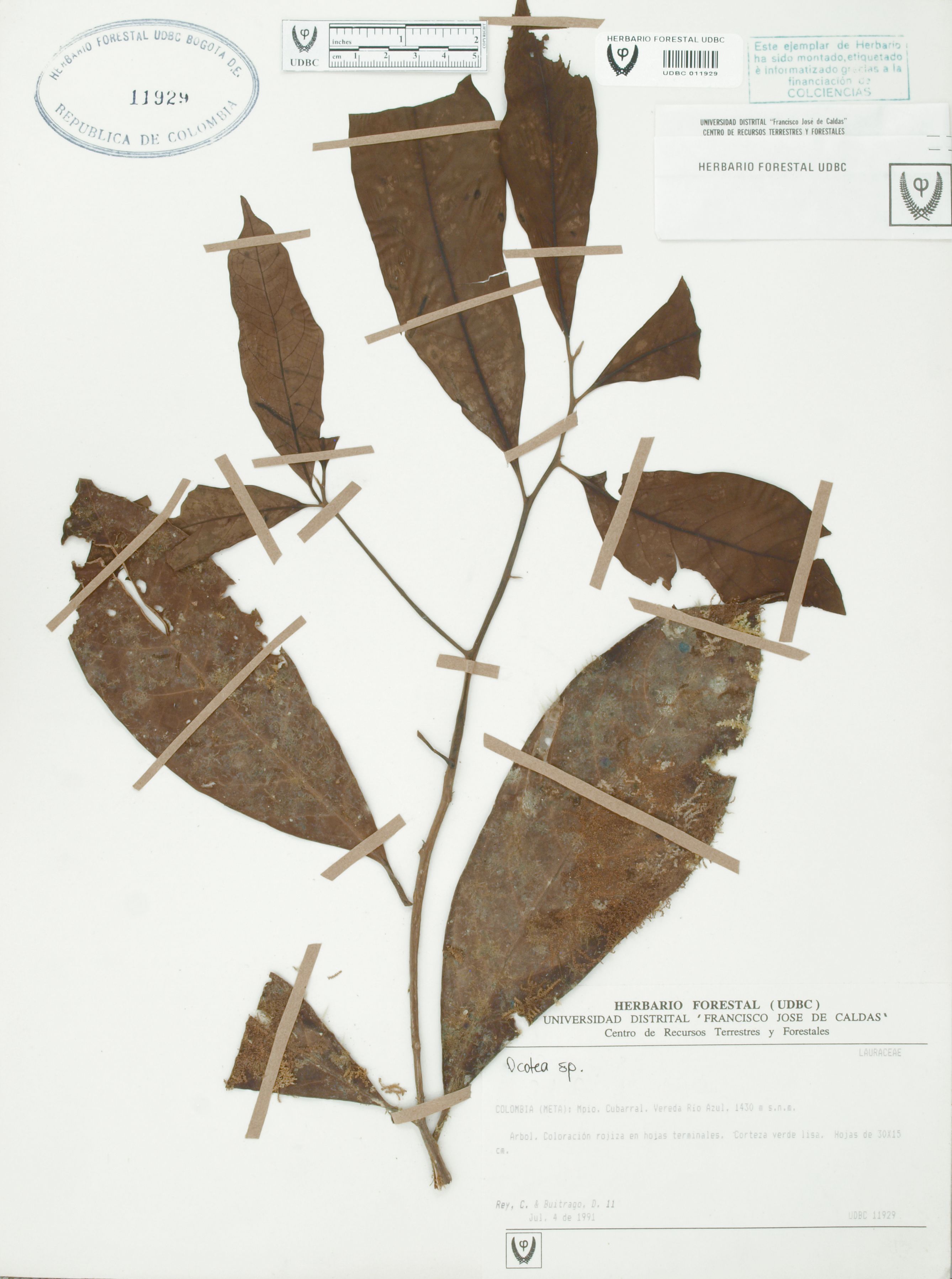 Fotografía del ejemplar Rey, C. 11, determinado como Ocotea sp.