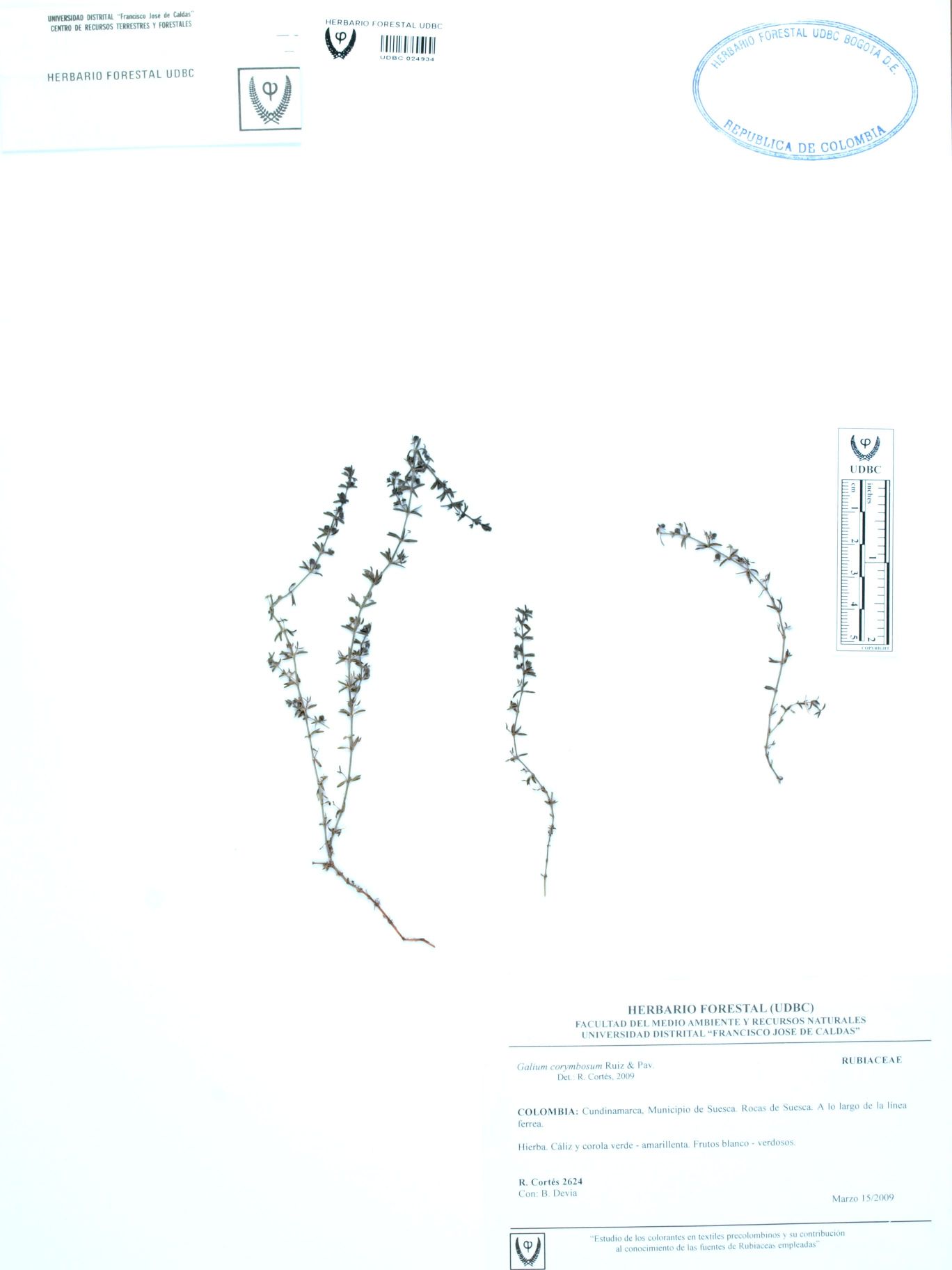 Fotografía del ejemplar Cortés-B., R. 2624, determinado como Galium corymbosum en el año 2009
