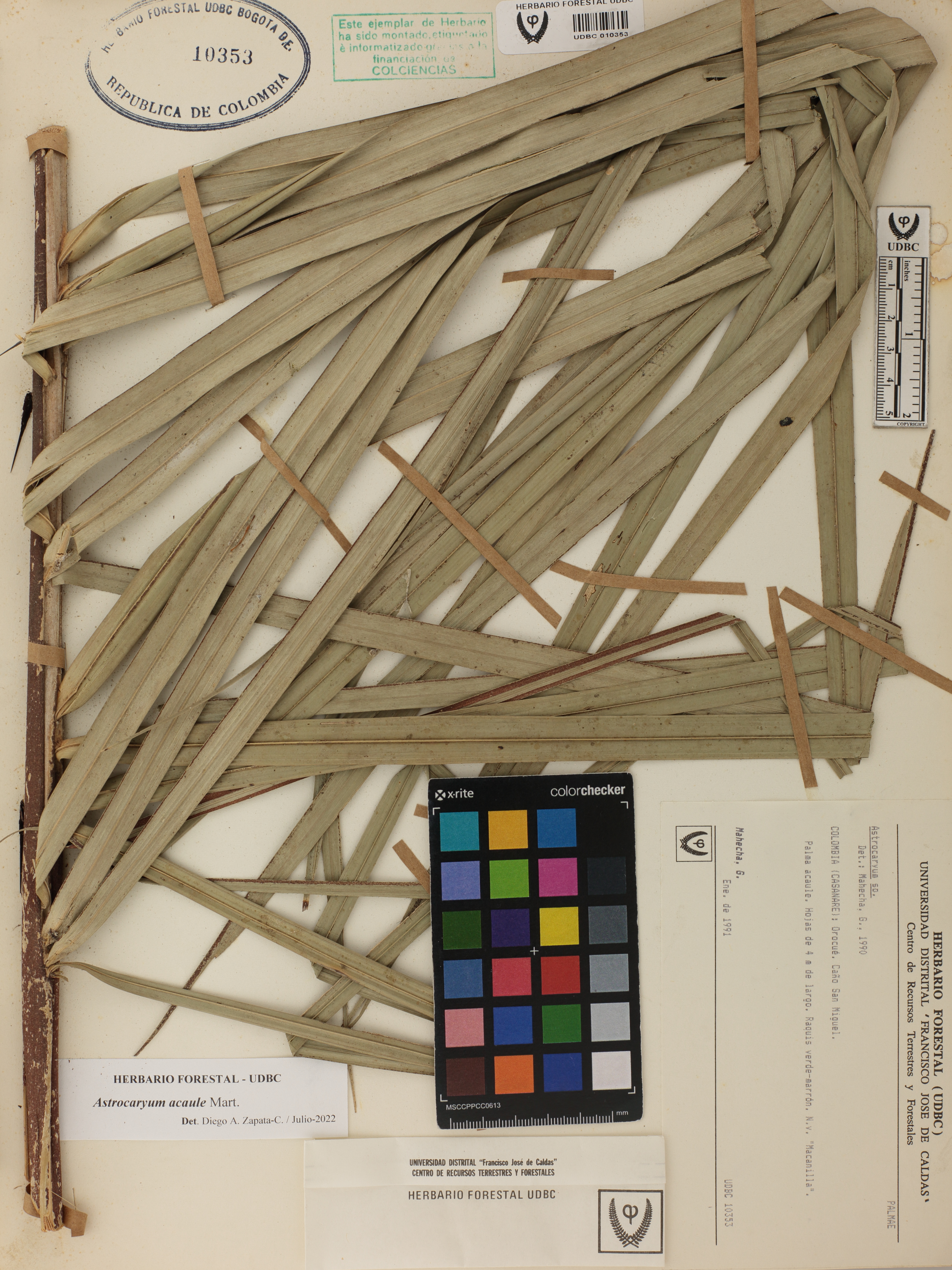 Fotografía del ejemplar Mahecha, G., determinado como Astrocaryum acaule en el año 2022