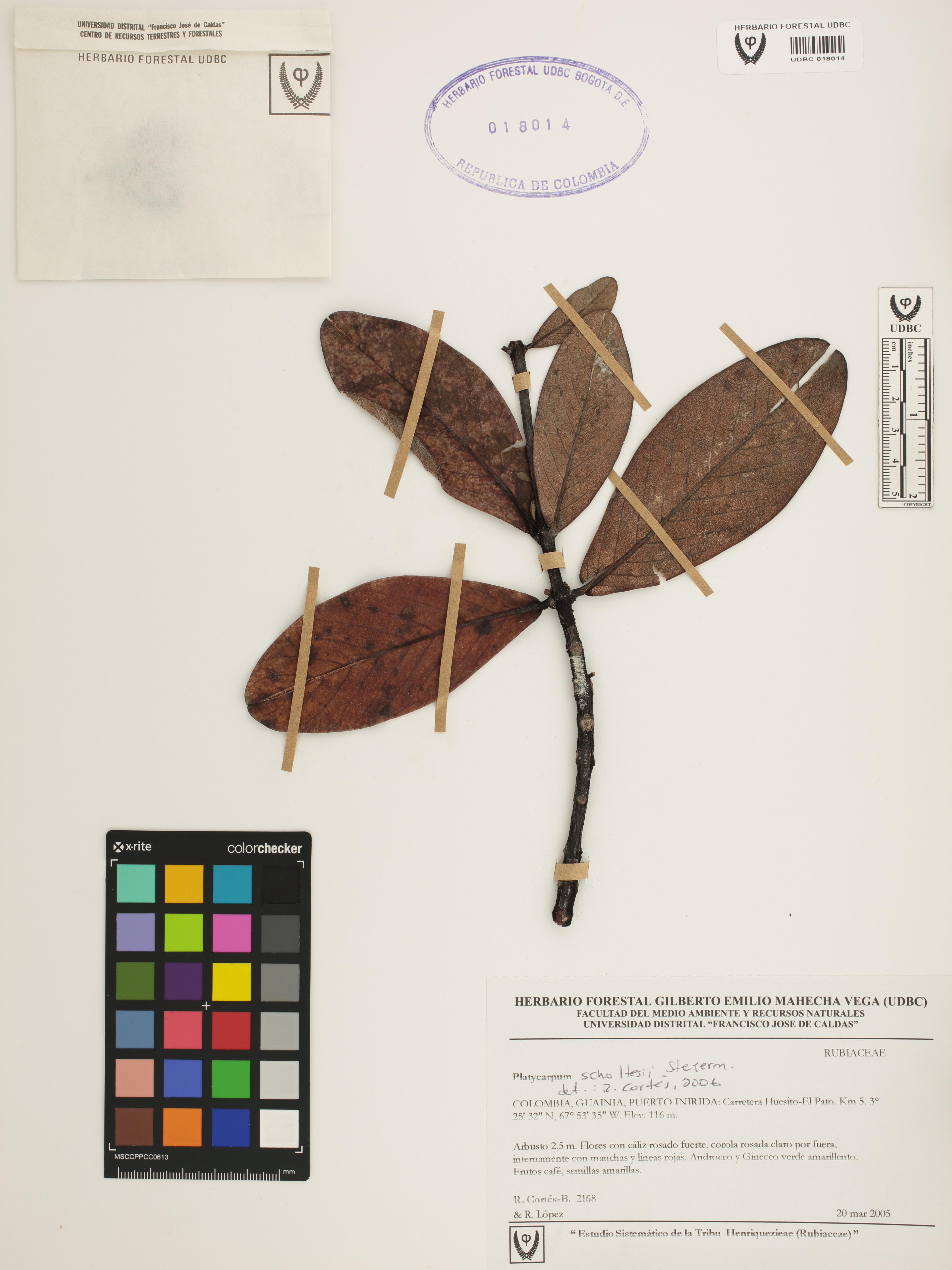 | dc.description | Fotografía del ejemplar Cortés-B., R. 2168, determinado como Platycarpum schultesii en el año 2006 | |