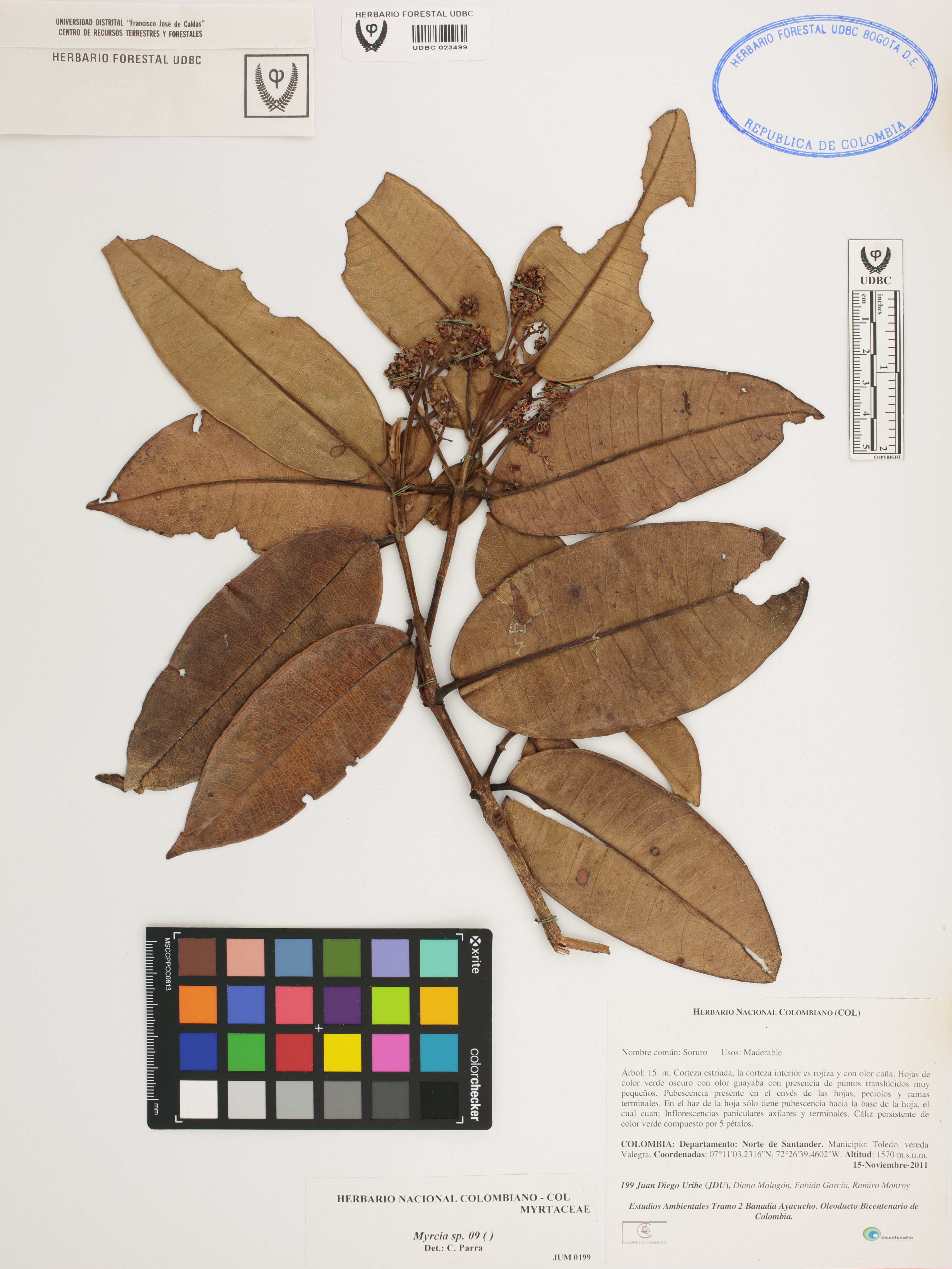 Fotografía del ejemplar Uribe, J. 199, determinado como Myrcia sp.