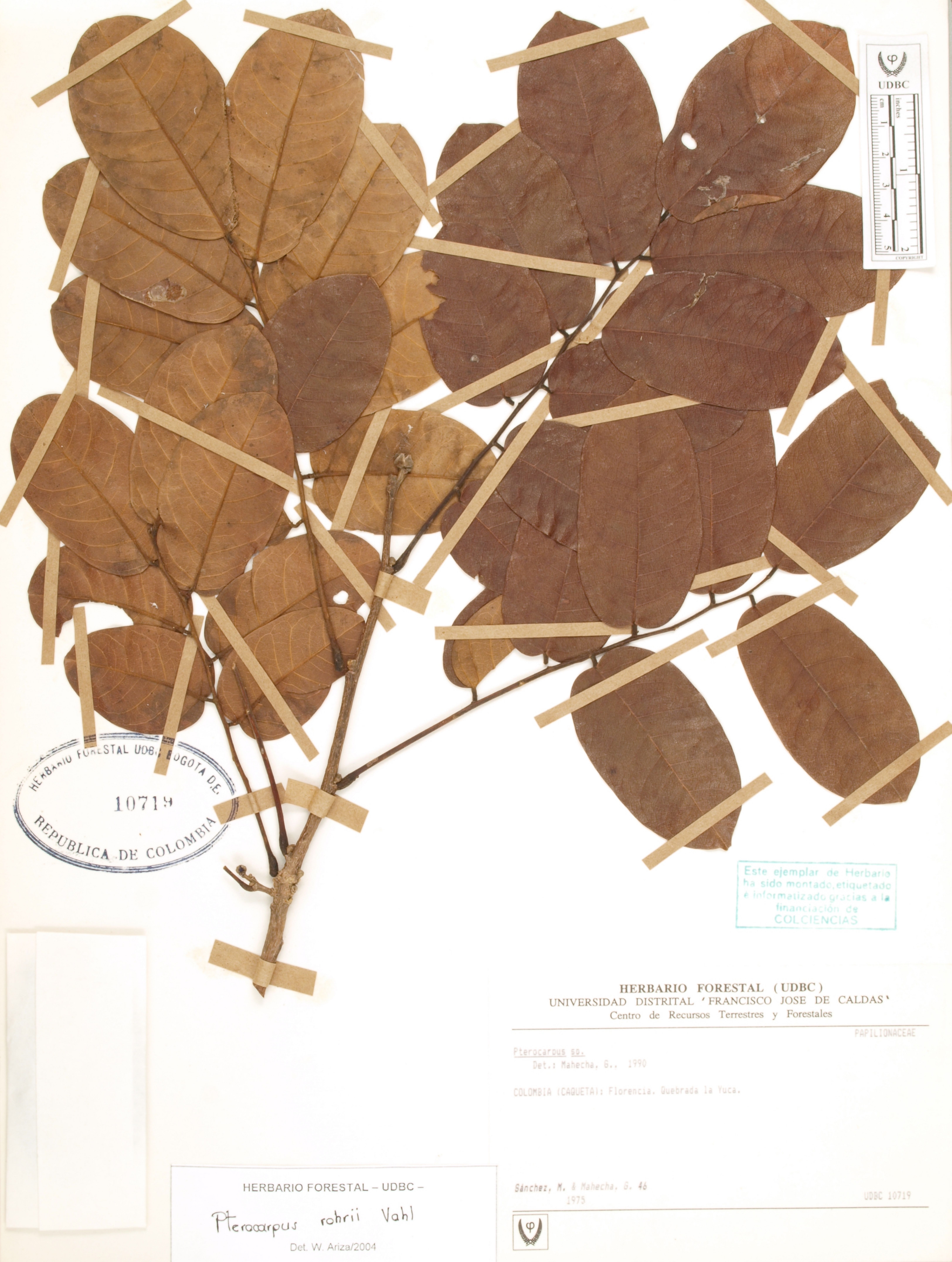 Fotografía del ejemplar Sánchez, M. 46, determinado como Pterocarpus rohrii en el año 2004