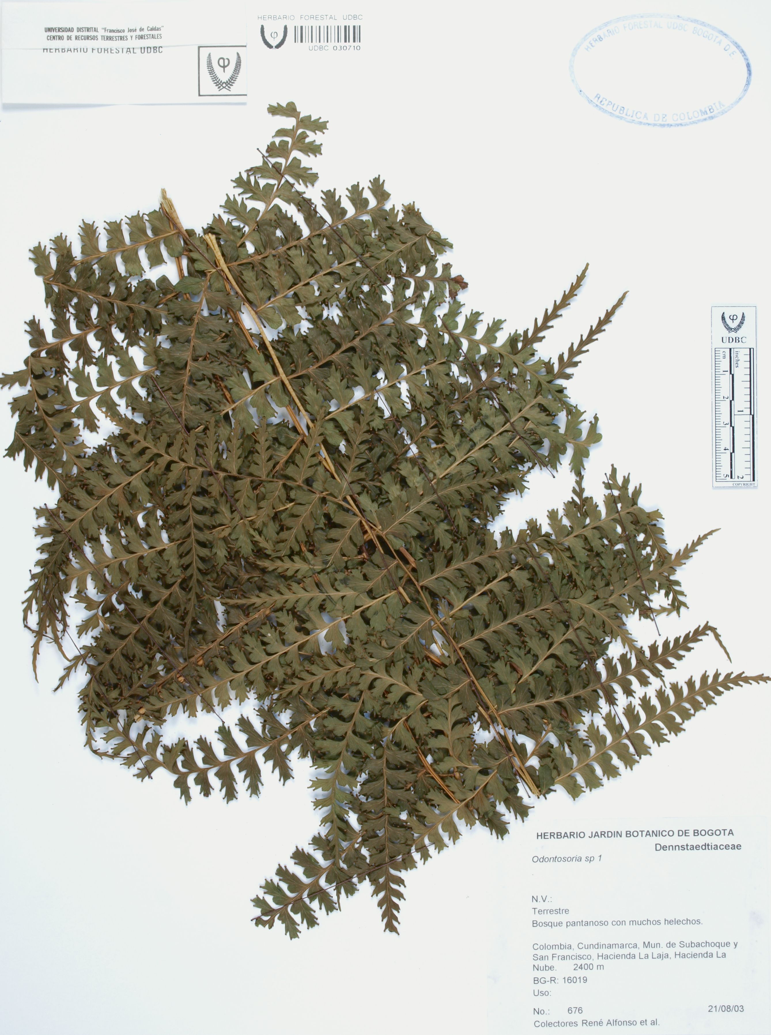 Fotografía del ejemplar Alfonso, R. 676, determinado como Odontosoria sp.