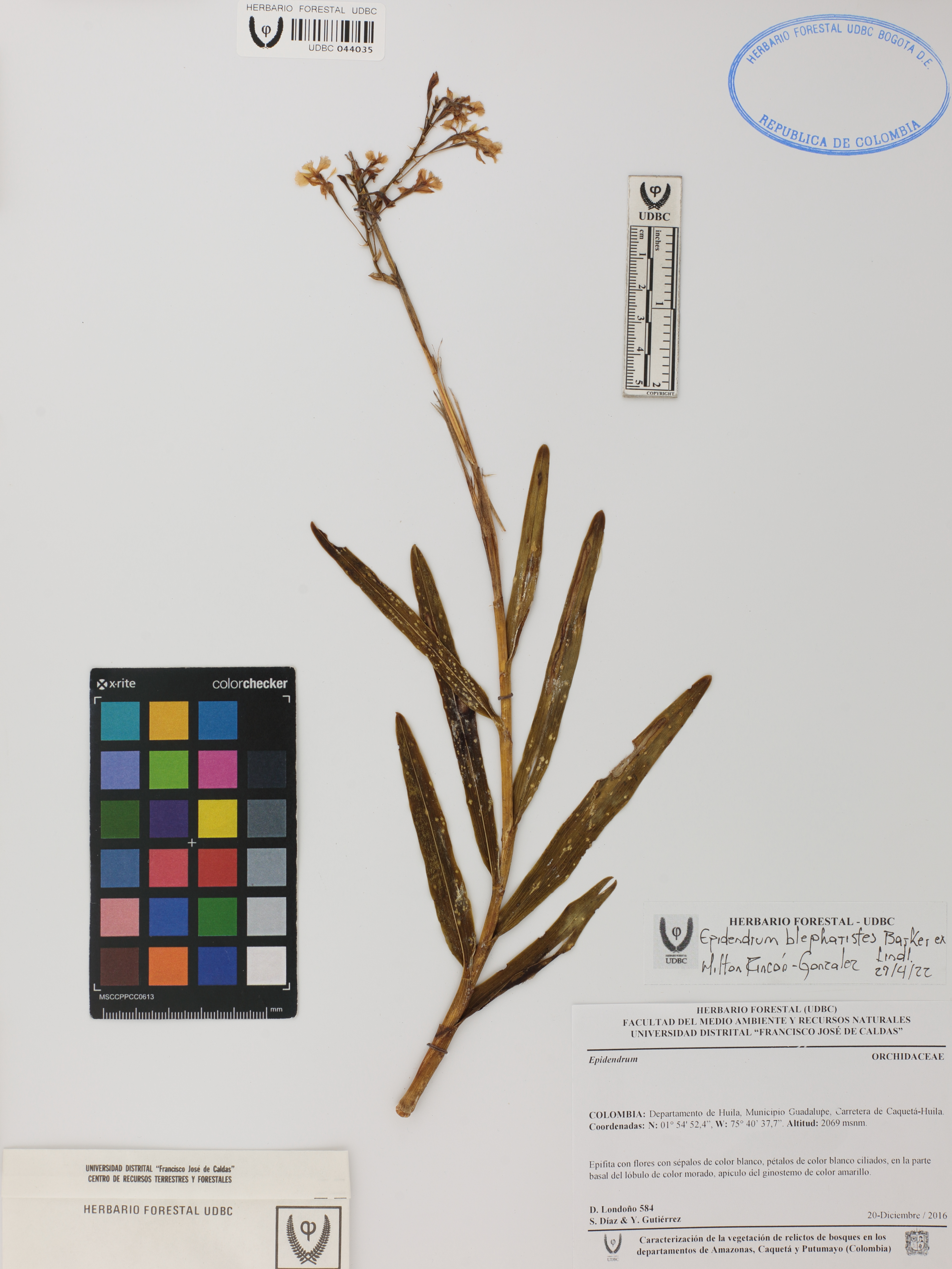 | dc.description | Fotografía del ejemplar Londoño, D. 584, determinado como Epidendrum blepharistes en el año 2022 | |