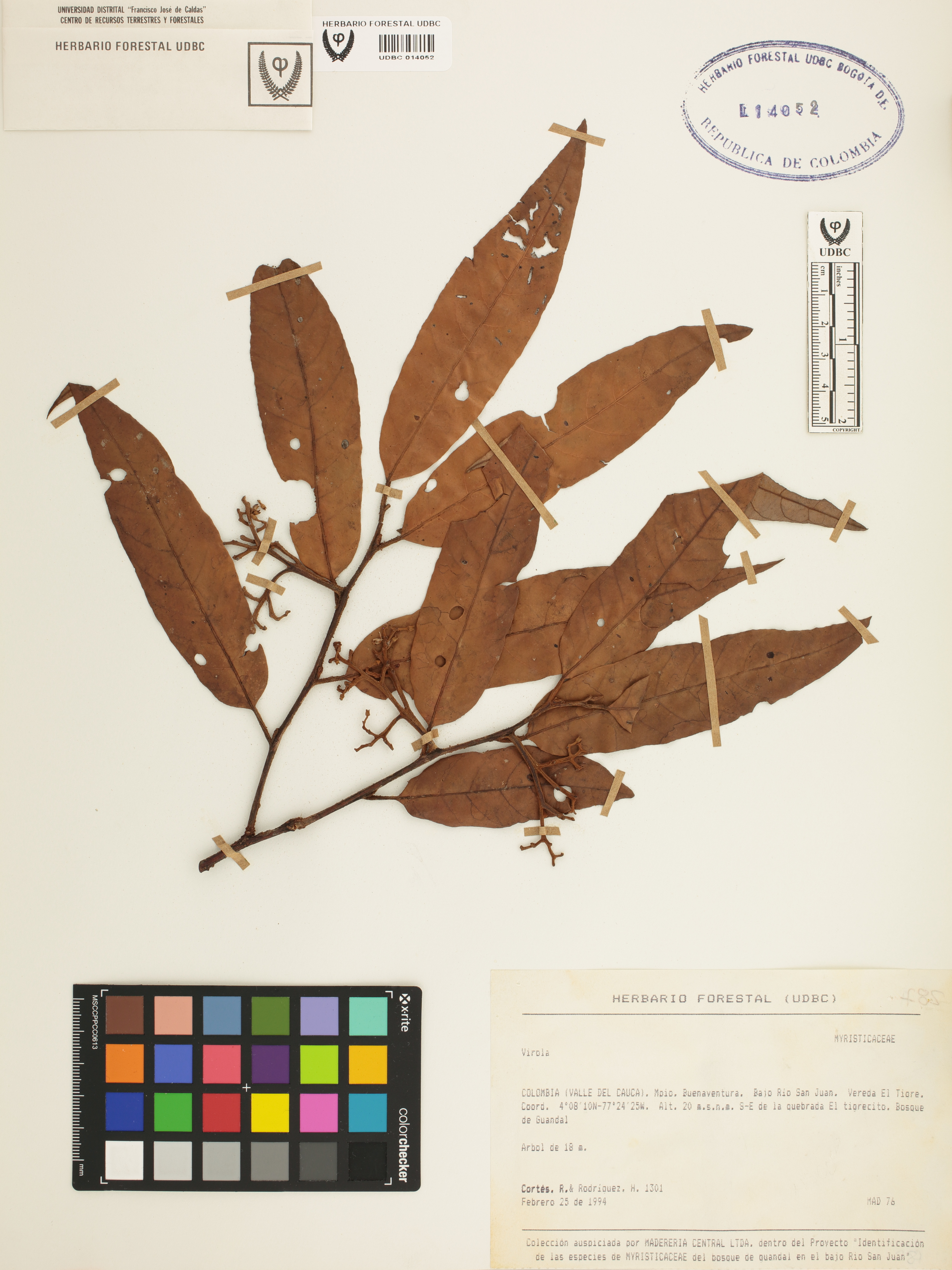 Fotografía del ejemplar Cortés, R. 1301, determinado como Virola sp.