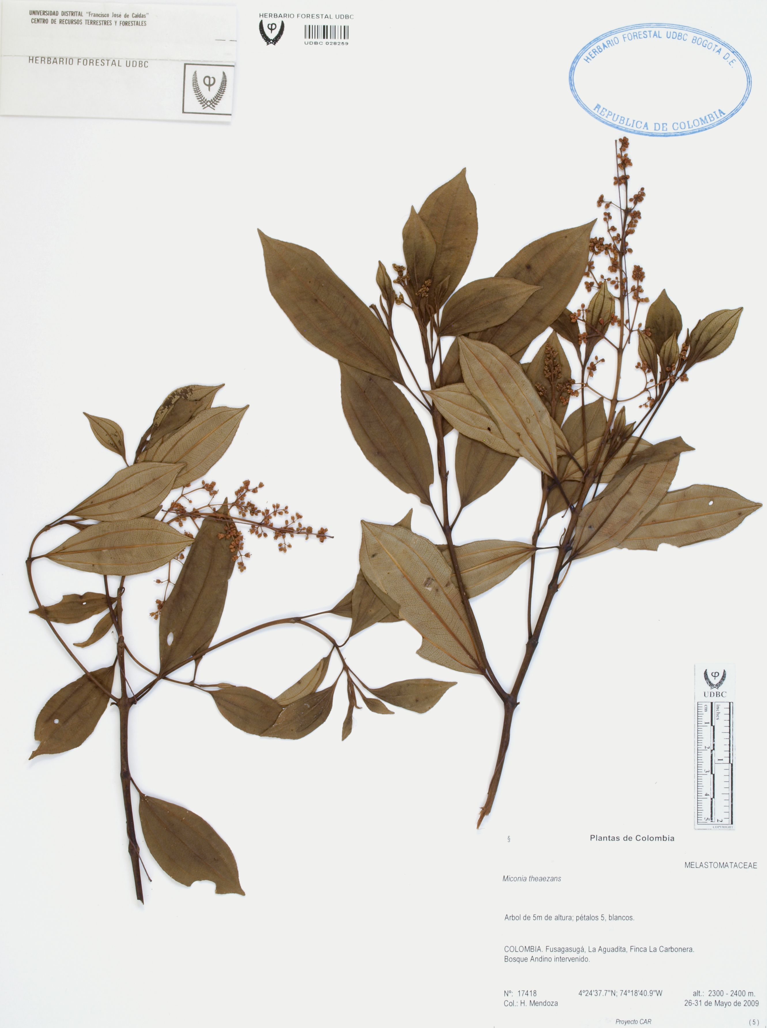 | dc.description | Fotografía del ejemplar Mendoza, H. 17418, determinado como Miconia theaezans en el año 2009 | |