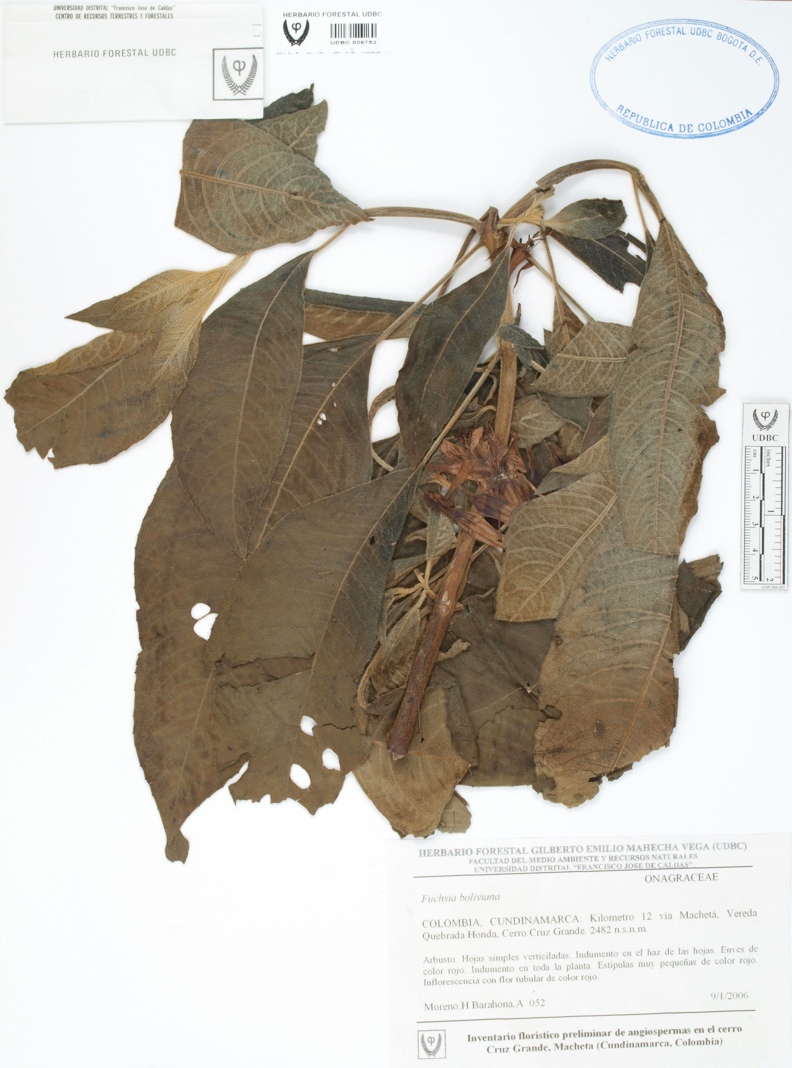 Fotografía del ejemplar Moreno, H. 52, determinado como Fuchsia boliviana