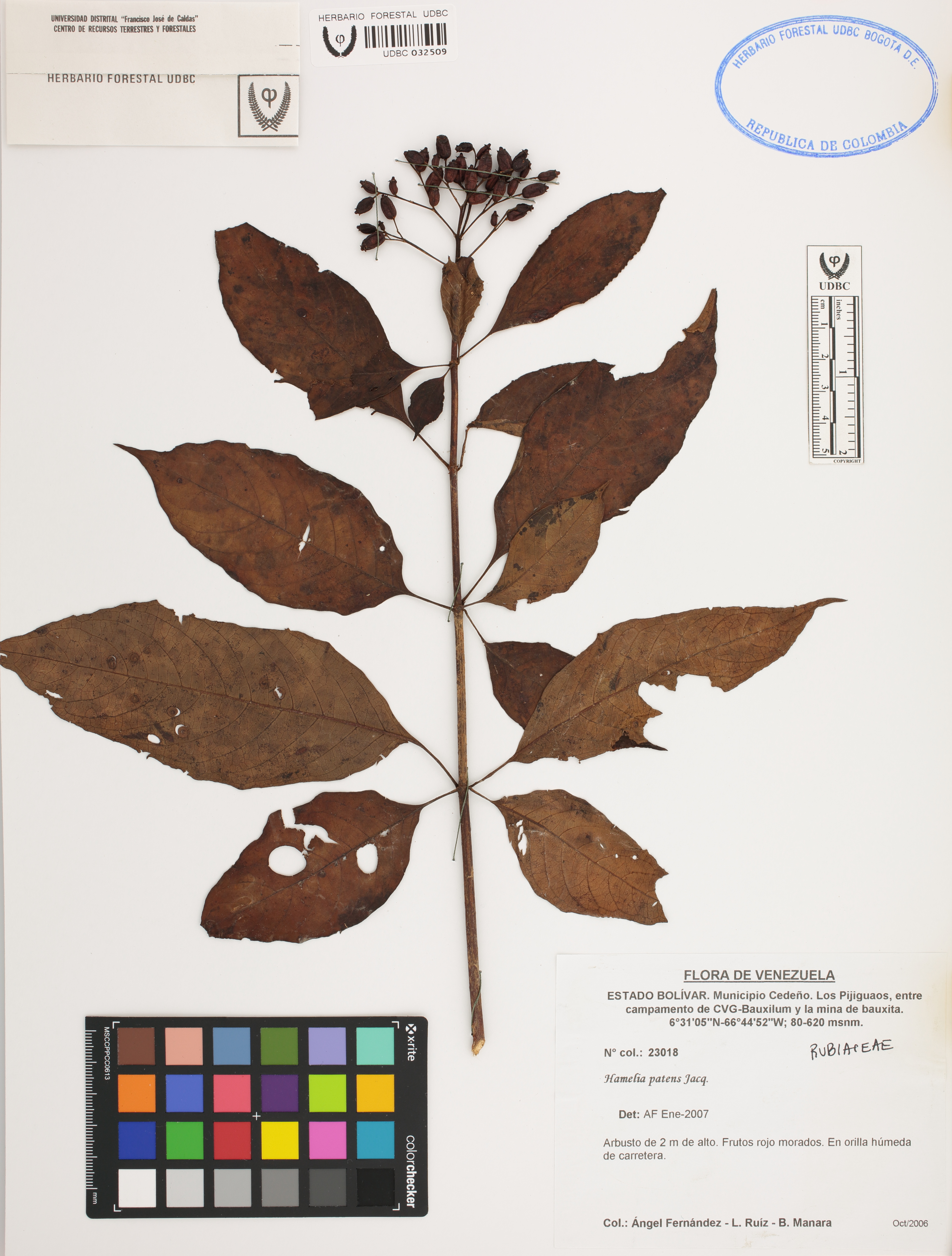 | dc.description | Fotografía del ejemplar Fernández, A. 23018, determinado como Hamelia patens en el año 2007 | |