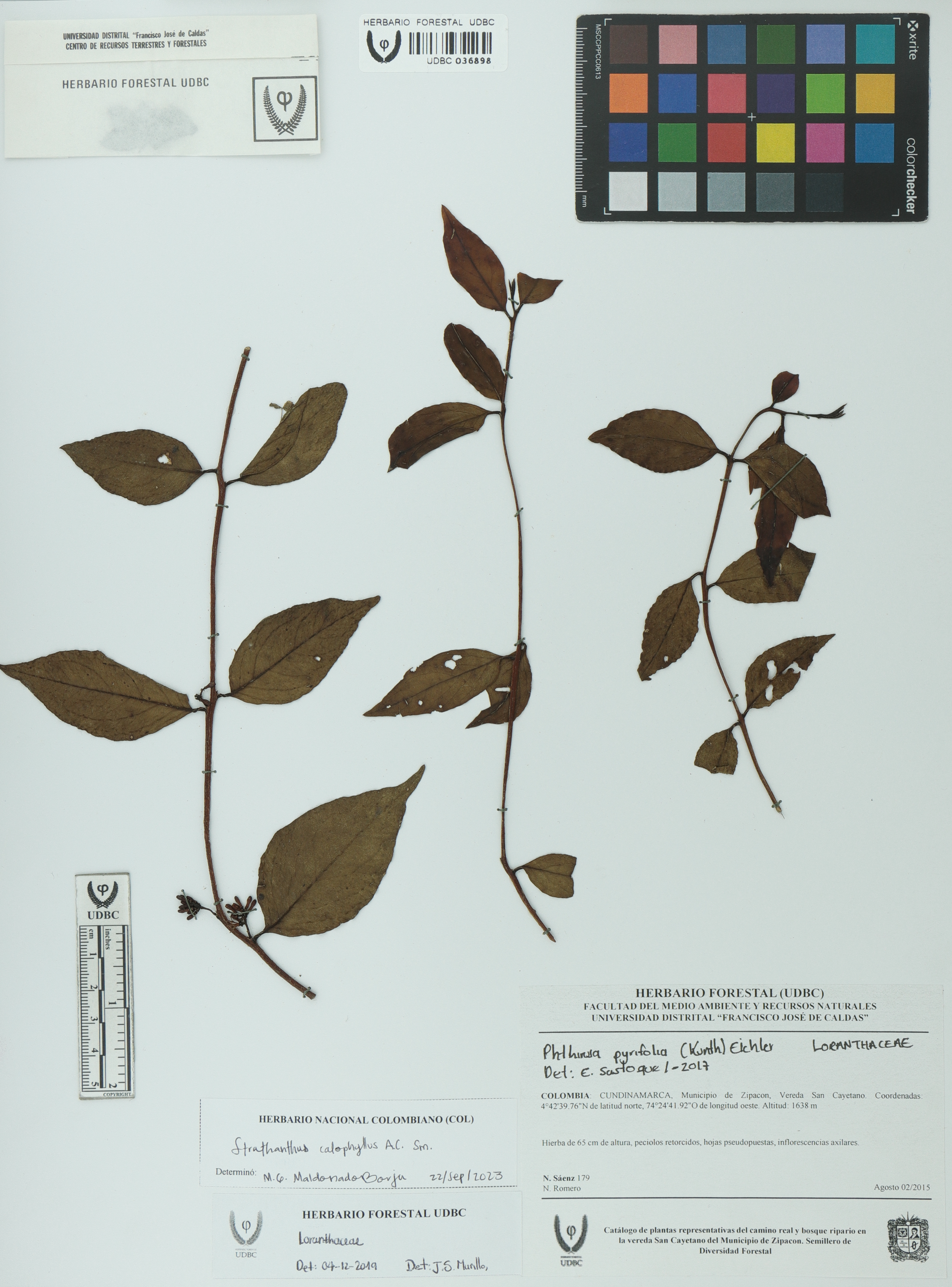 Fotografía del ejemplar Sáenz, N. 179, determinado como Struthanthus calophyllus en el año 2023