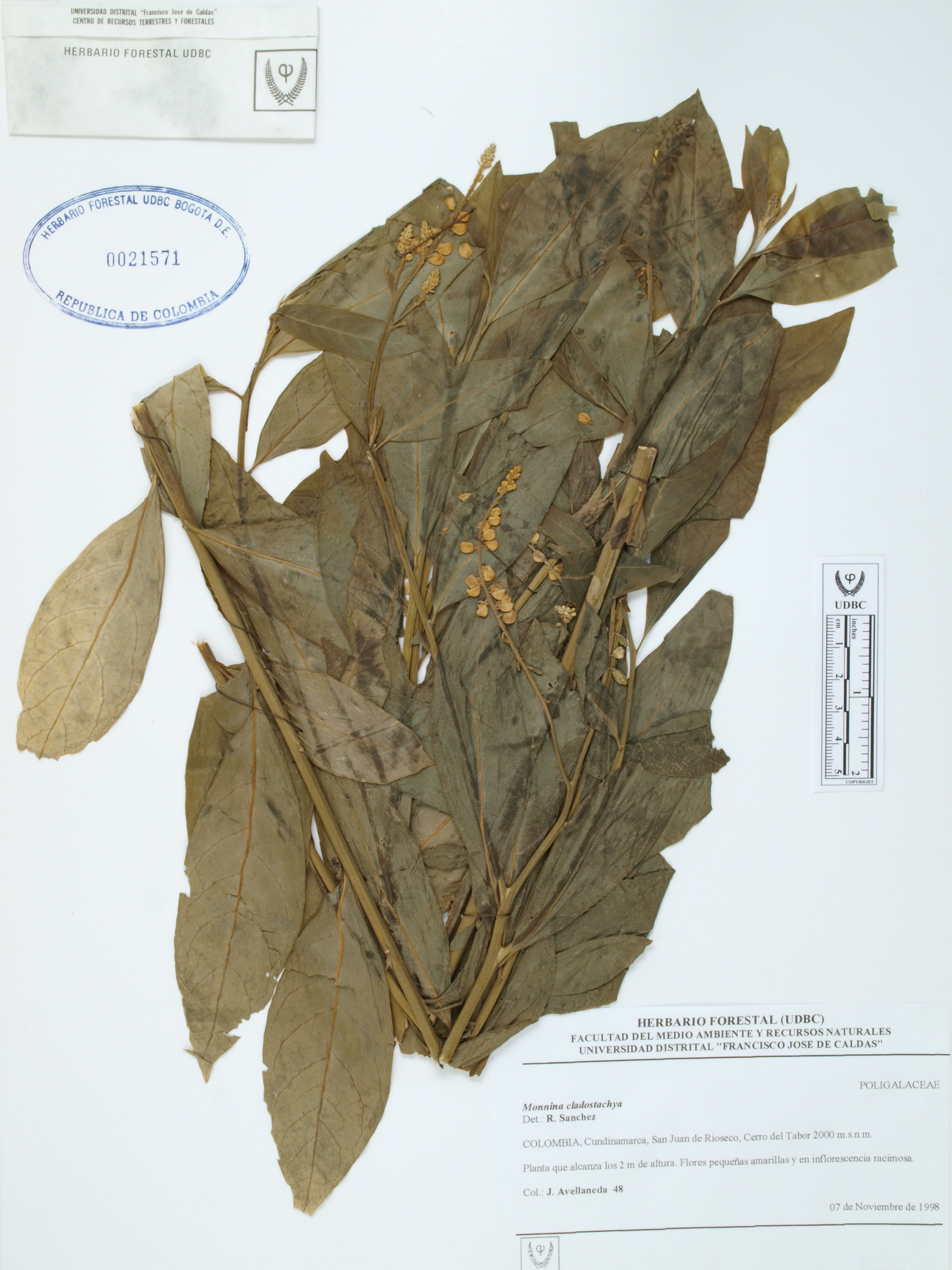 Fotografía del ejemplar Avellaneda, J. 48, determinado como Monnina cladostachya