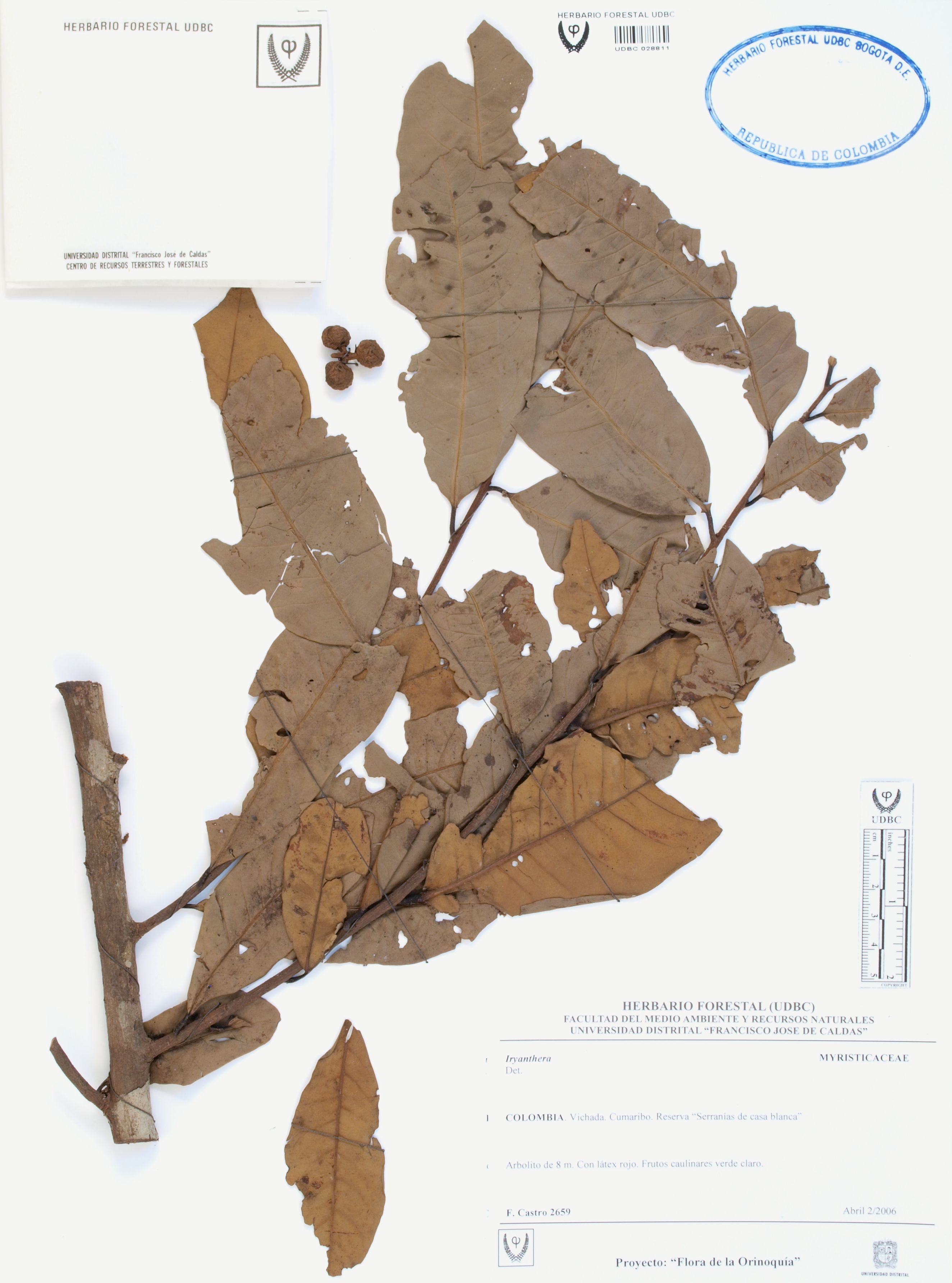 | dc.description | Fotografía del ejemplar Castro, F. 2659, determinado como Iryanthera sp. | |