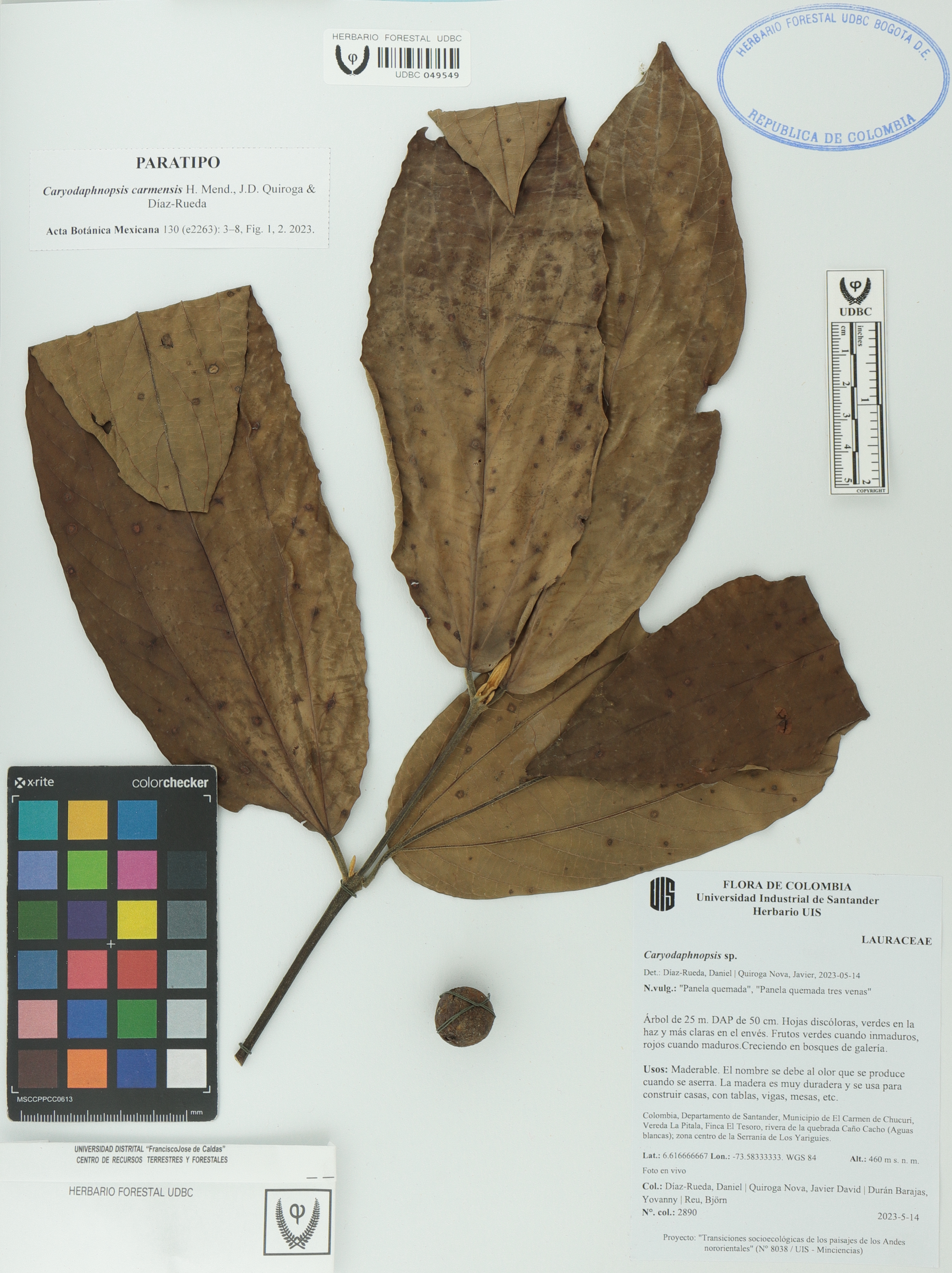 Fotografía del ejemplar Díaz-Rueda, D. 2890, Paratipo de Caryodaphnopsis carmensis