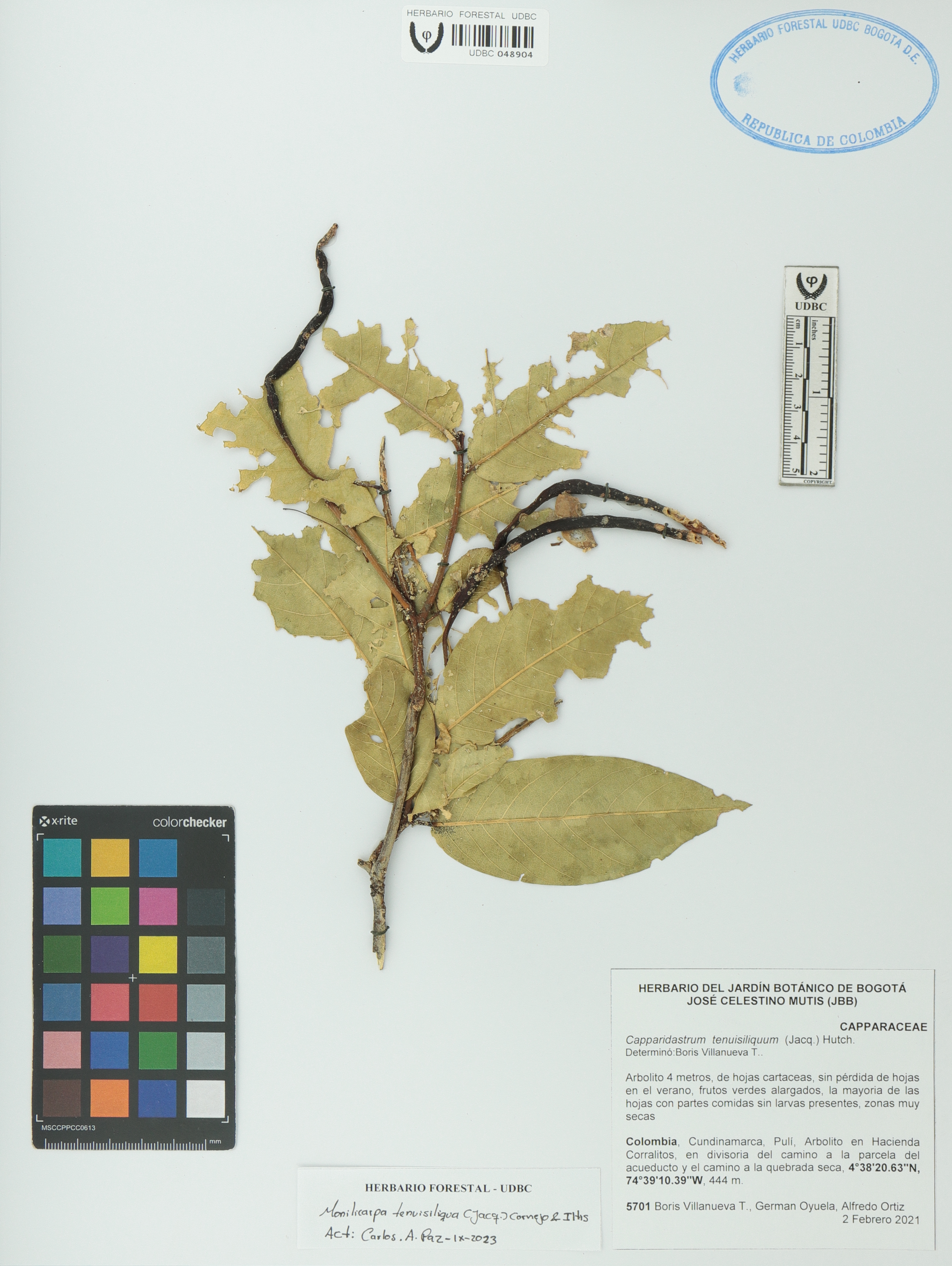 Fotografía del ejemplar Villanueva, B. 5701, determinado como Monilicarpa tenuisiliqua