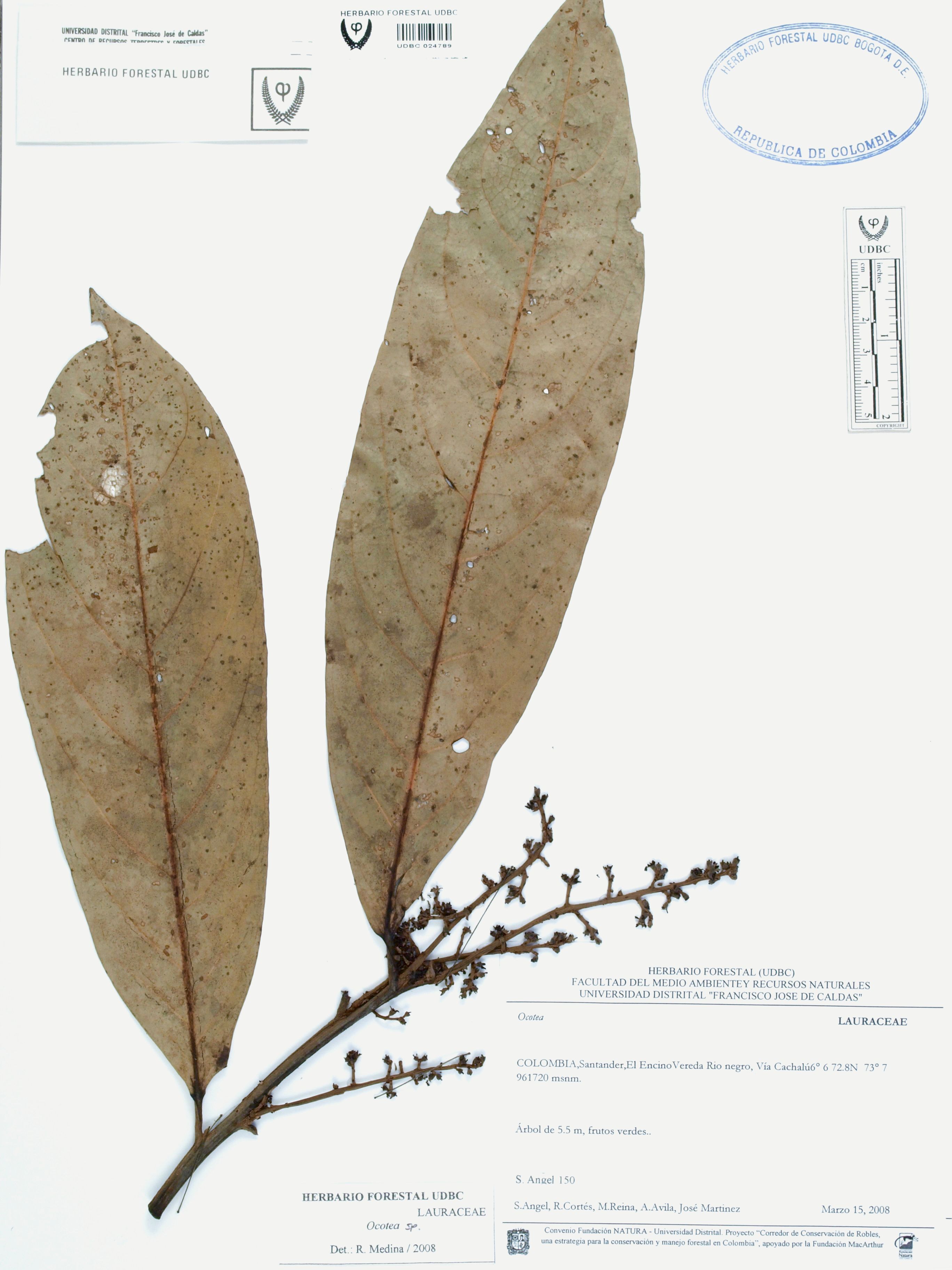 Fotografía del ejemplar Ángel, S. 150, determinado como Ocotea sp. en el año 2008