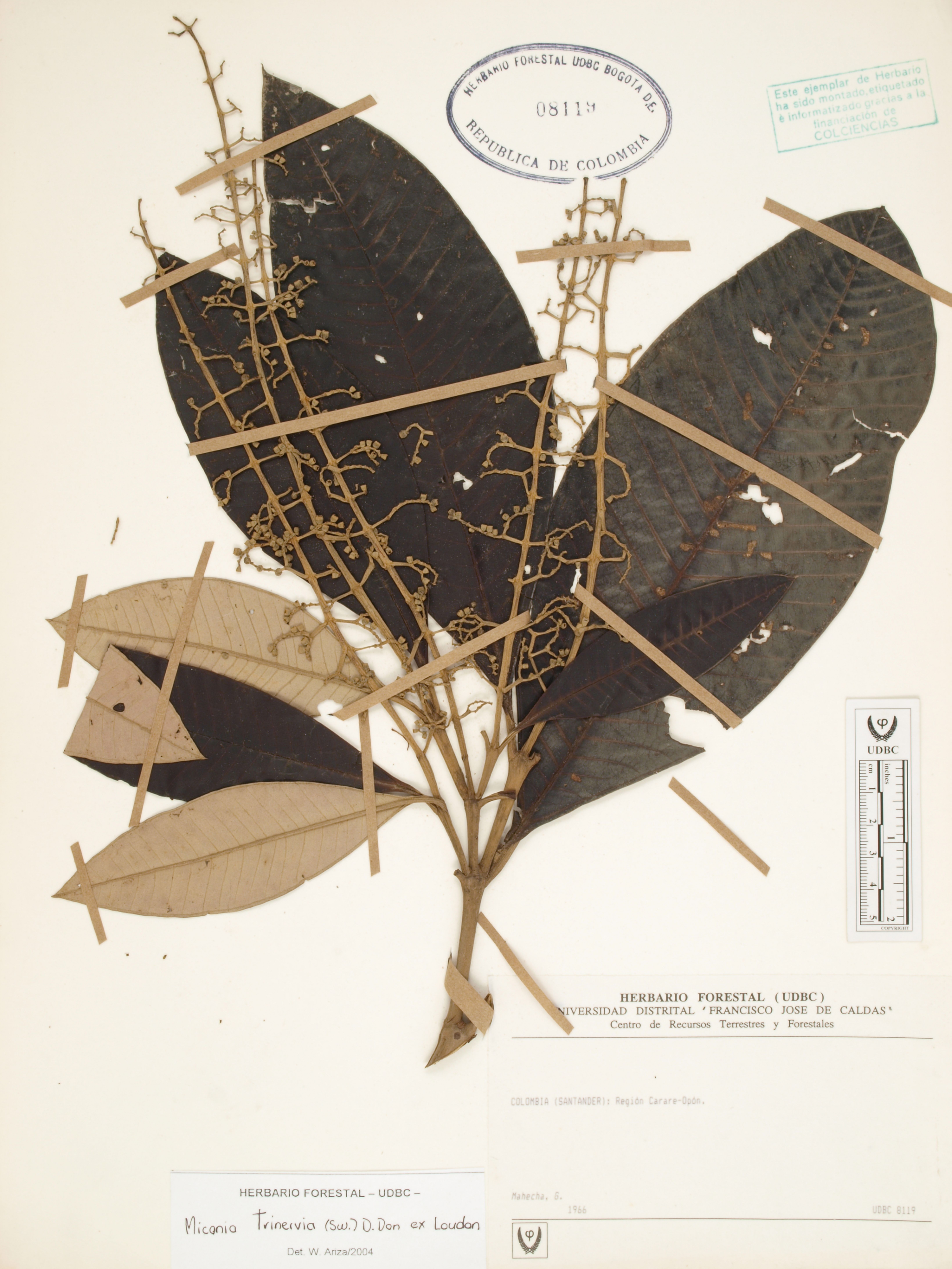 Fotografía del ejemplar Mahecha, G., determinado como Miconia trinervia en el año 2004