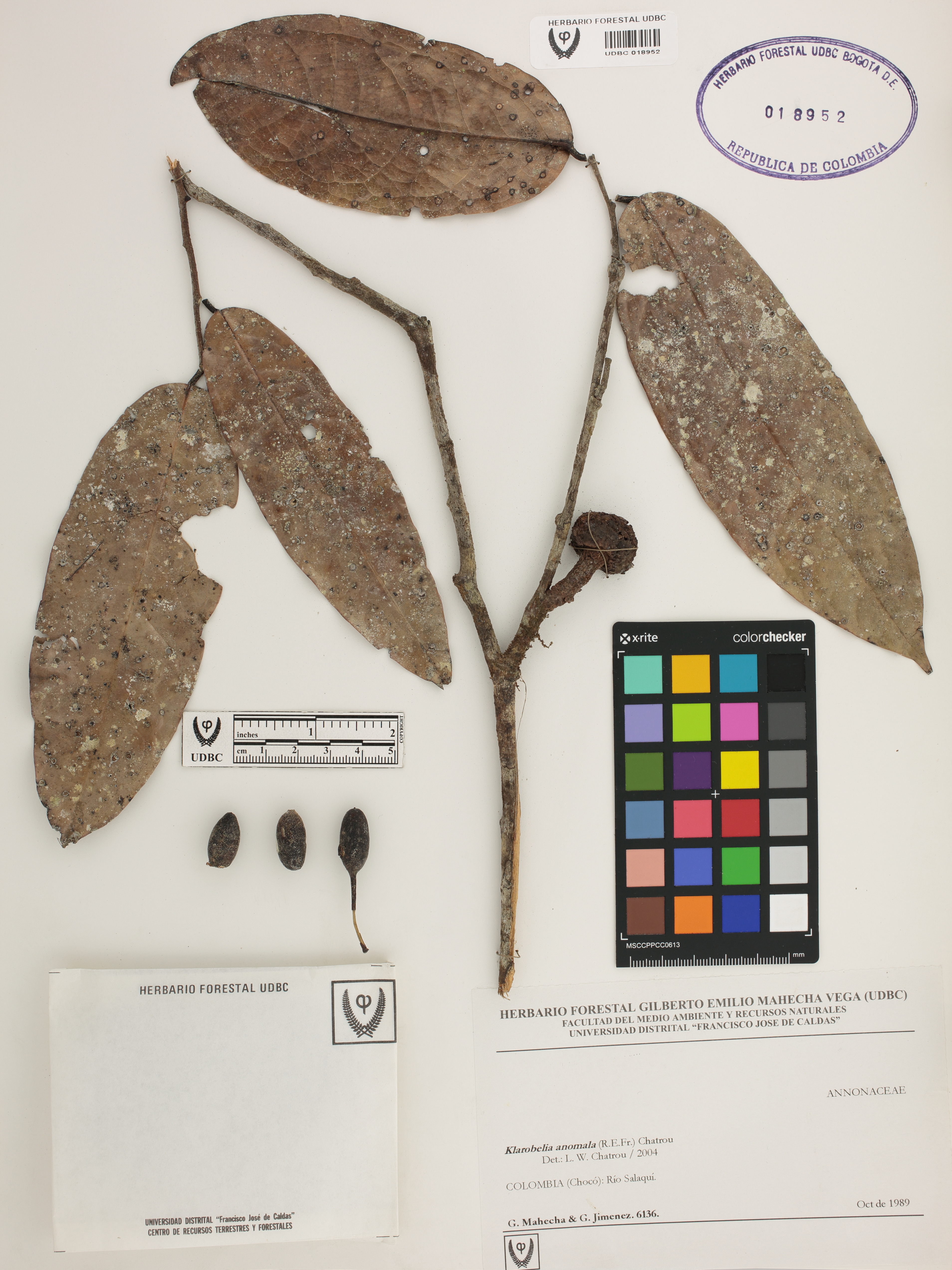 Fotografía del ejemplar Mahecha, G. 6136, determinado como Klarobelia anomala en el año 2004