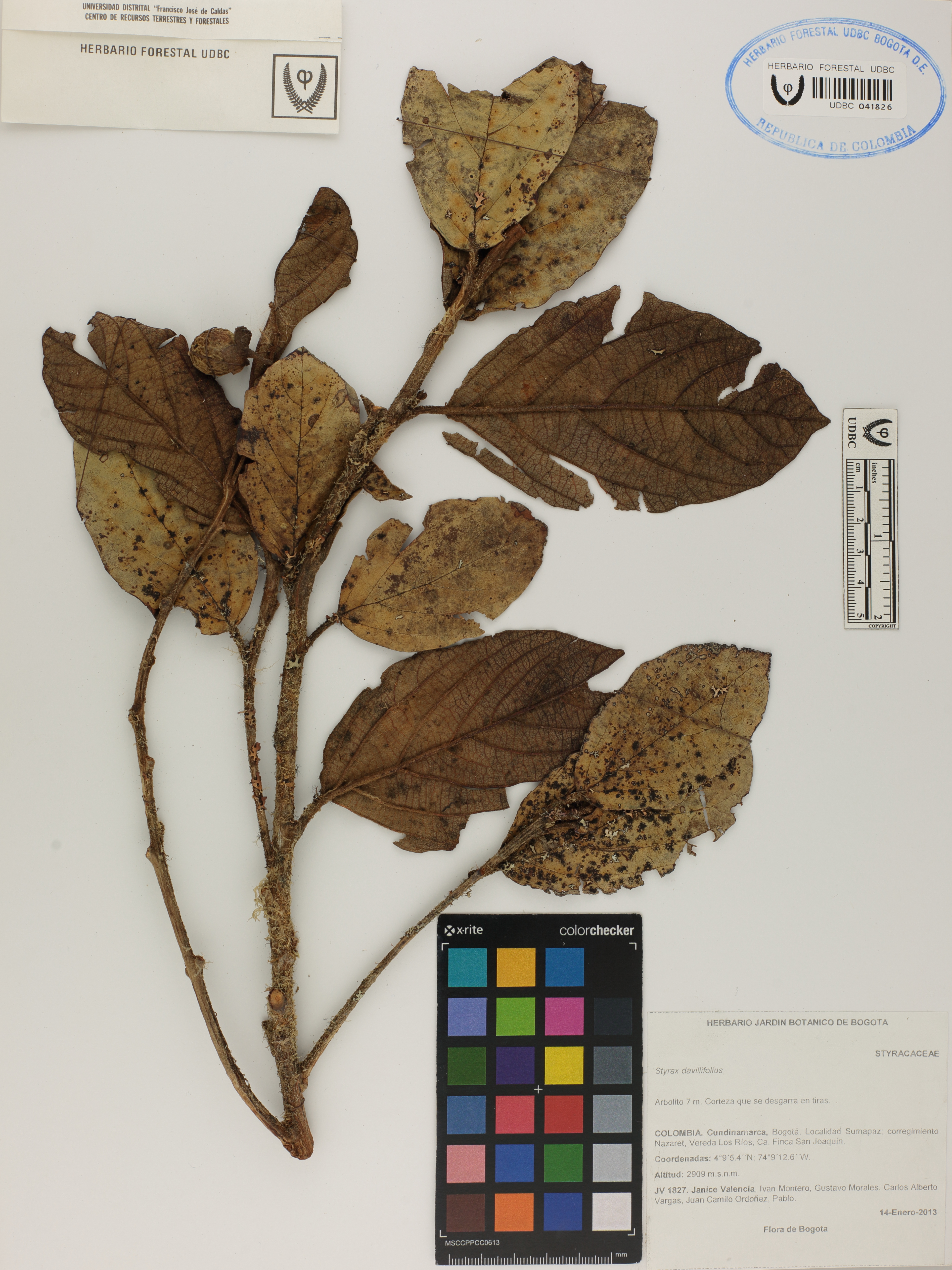 Fotografía del ejemplar Valencia, J. 1827, determinado como Styrax davillifolius