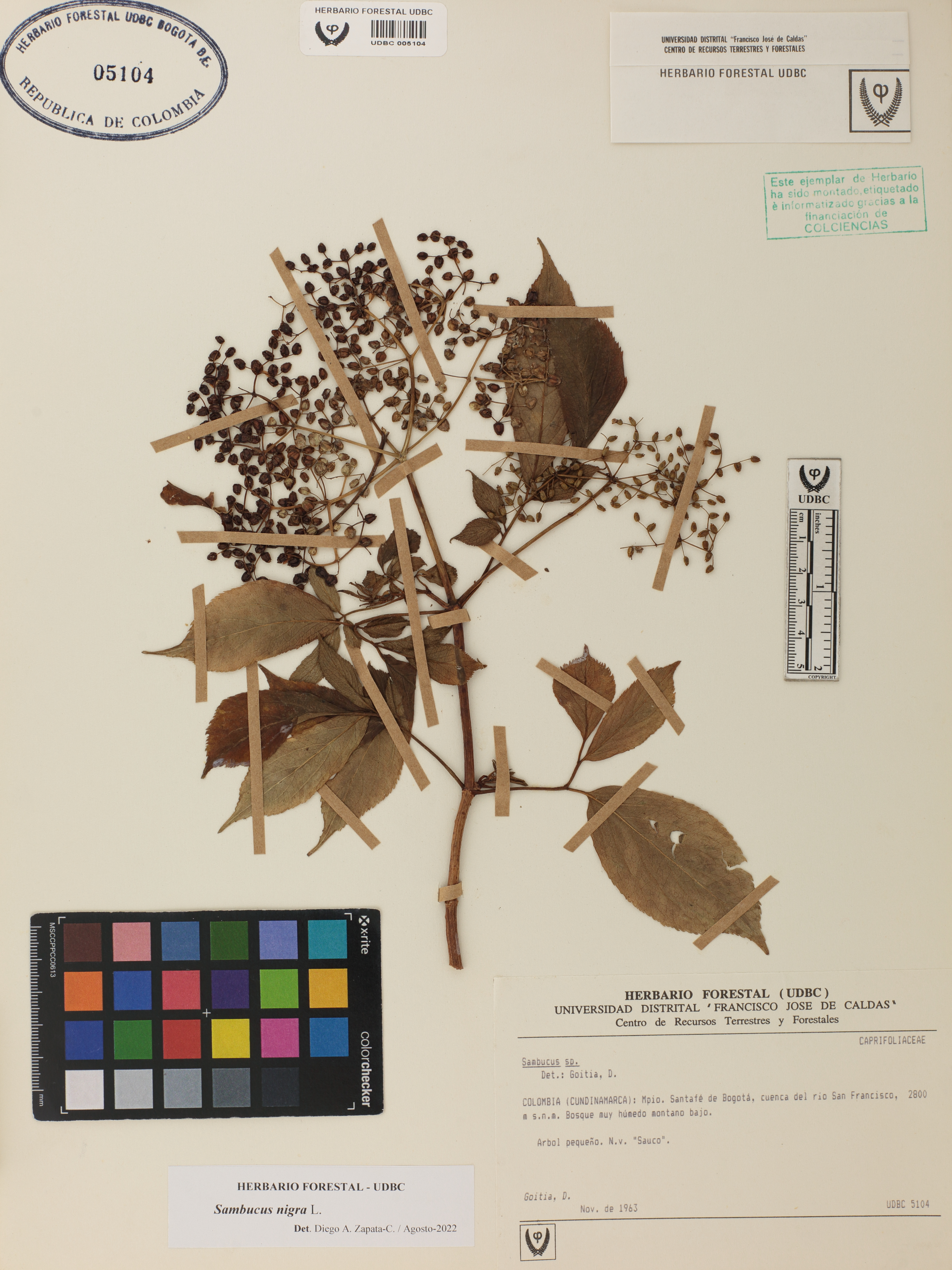 Fotografía del ejemplar Goitia, D., determinado como Sambucus nigra en el año 2022