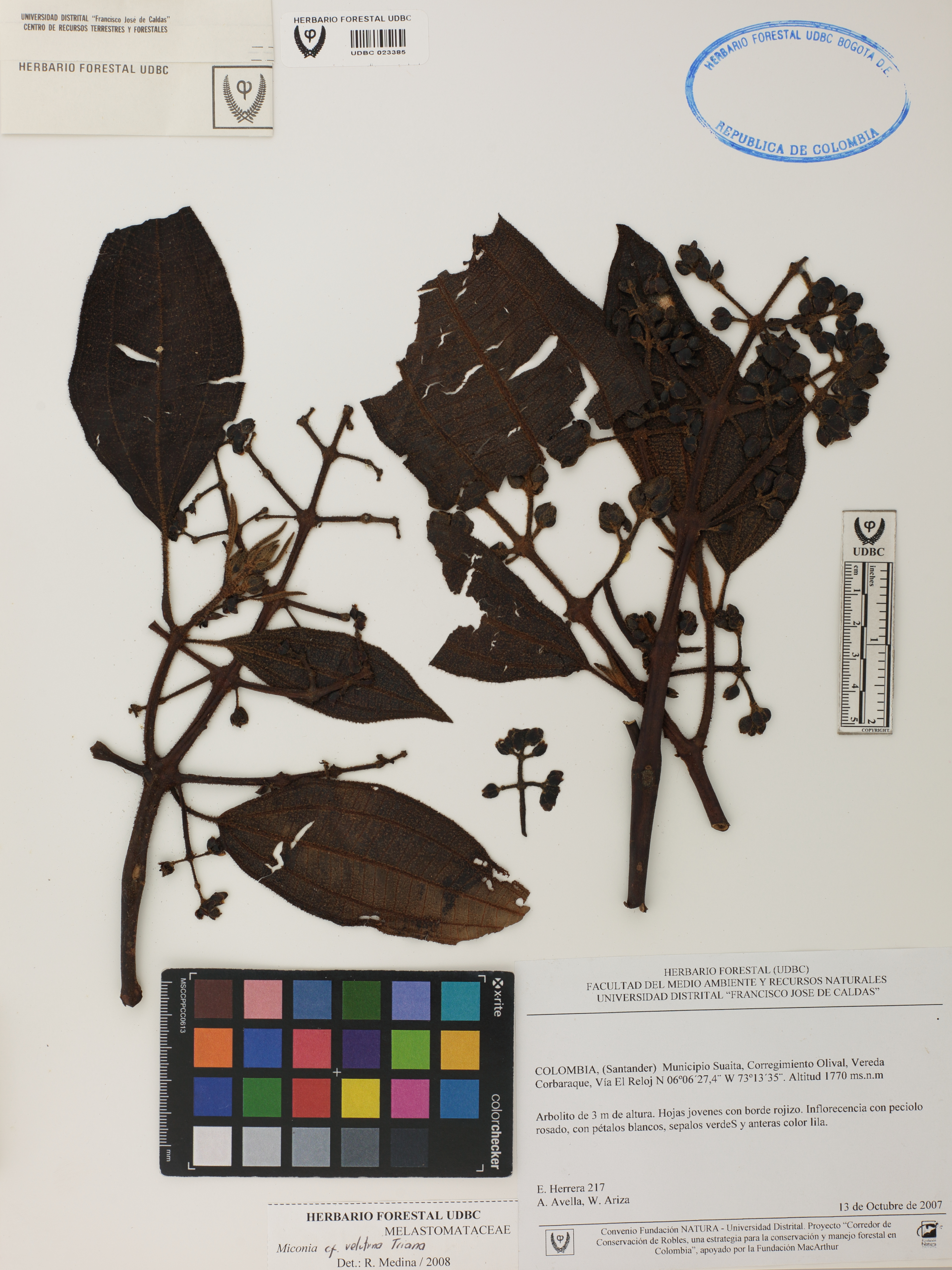 Fotografía del ejemplar Herrera, E. 217, determinado como Miconia velutina en el año 2008