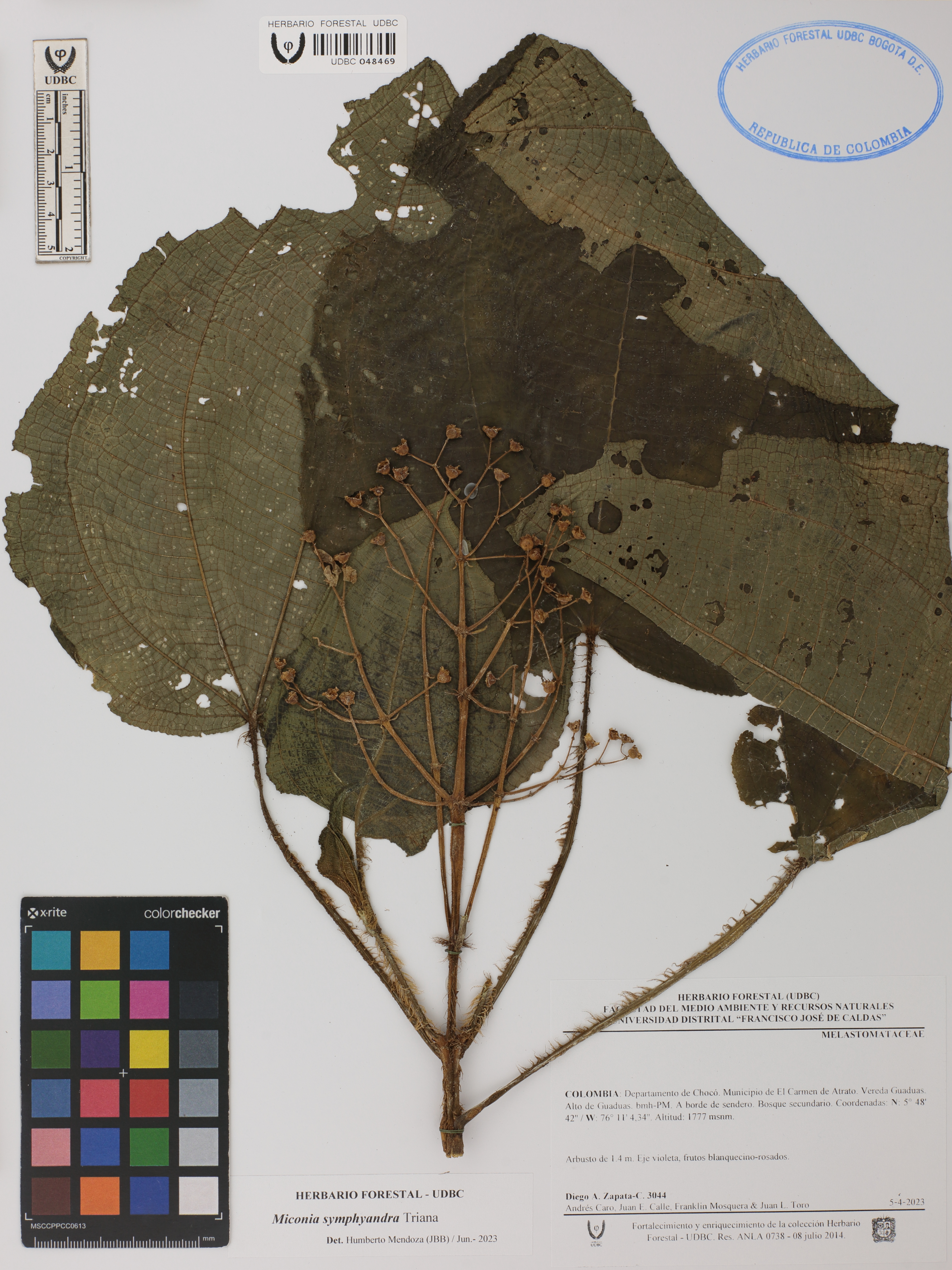 Fotografía del ejemplar Zapata-C., Diego 3044, determinado como Miconia symphyandra en el año 2023