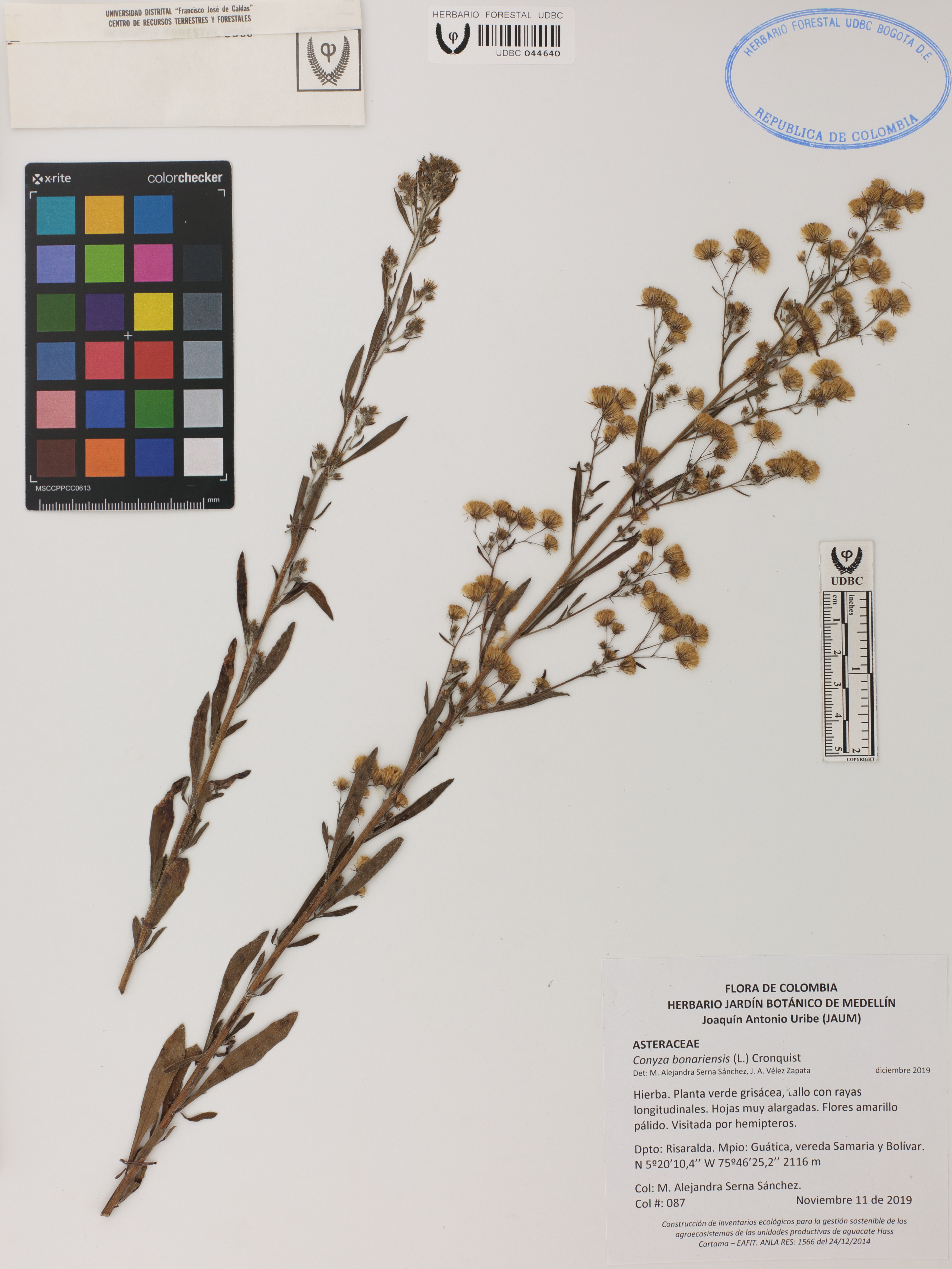| dc.description | Fotografía del ejemplar Serna-Sánchez, M. 87, determinado como Conyza bonariensis en el año 2019 | |
