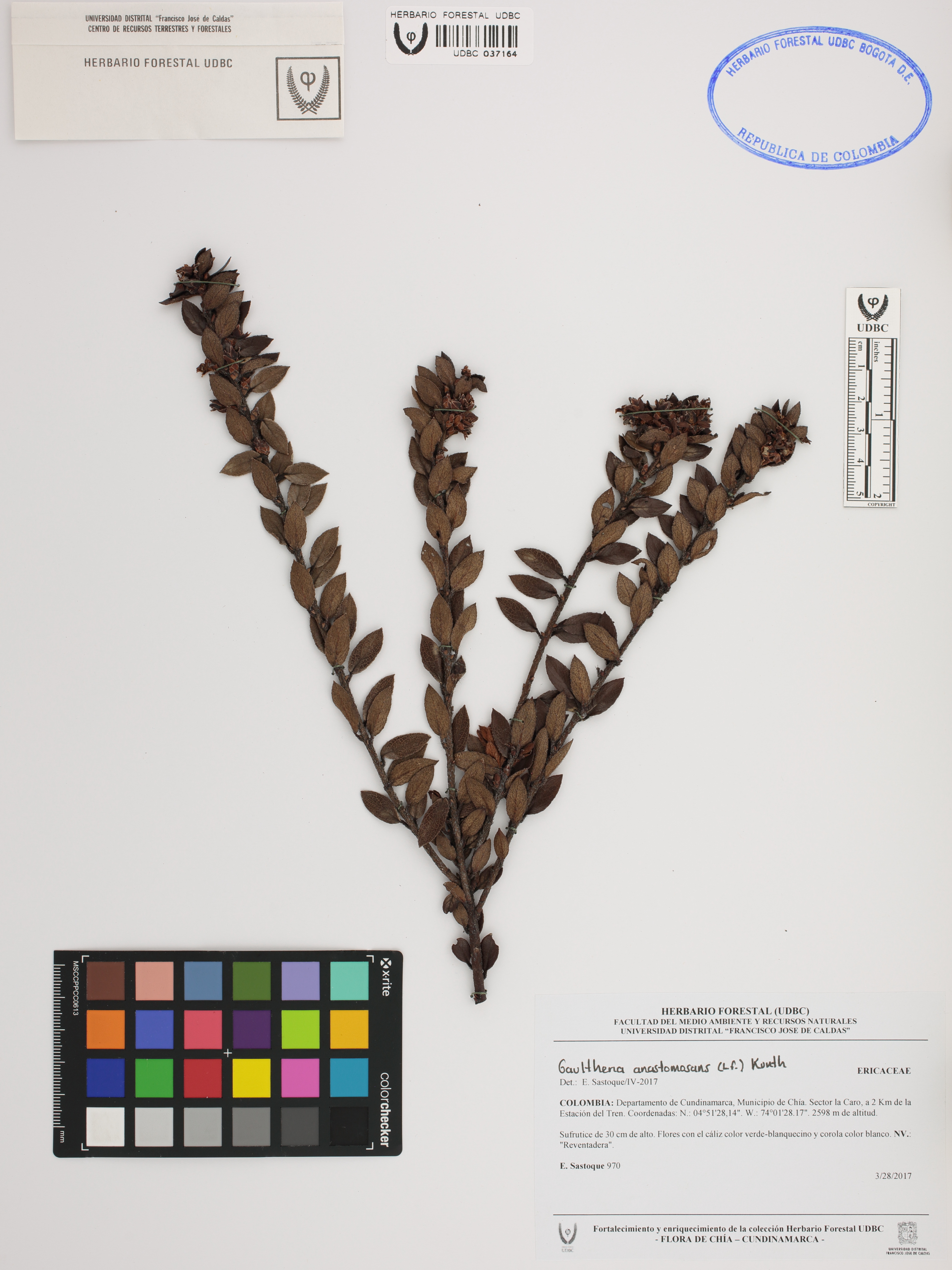 Fotografía del ejemplar Sastoque, E. 970, determinado como Gaultheria anastomosans en el año 2017