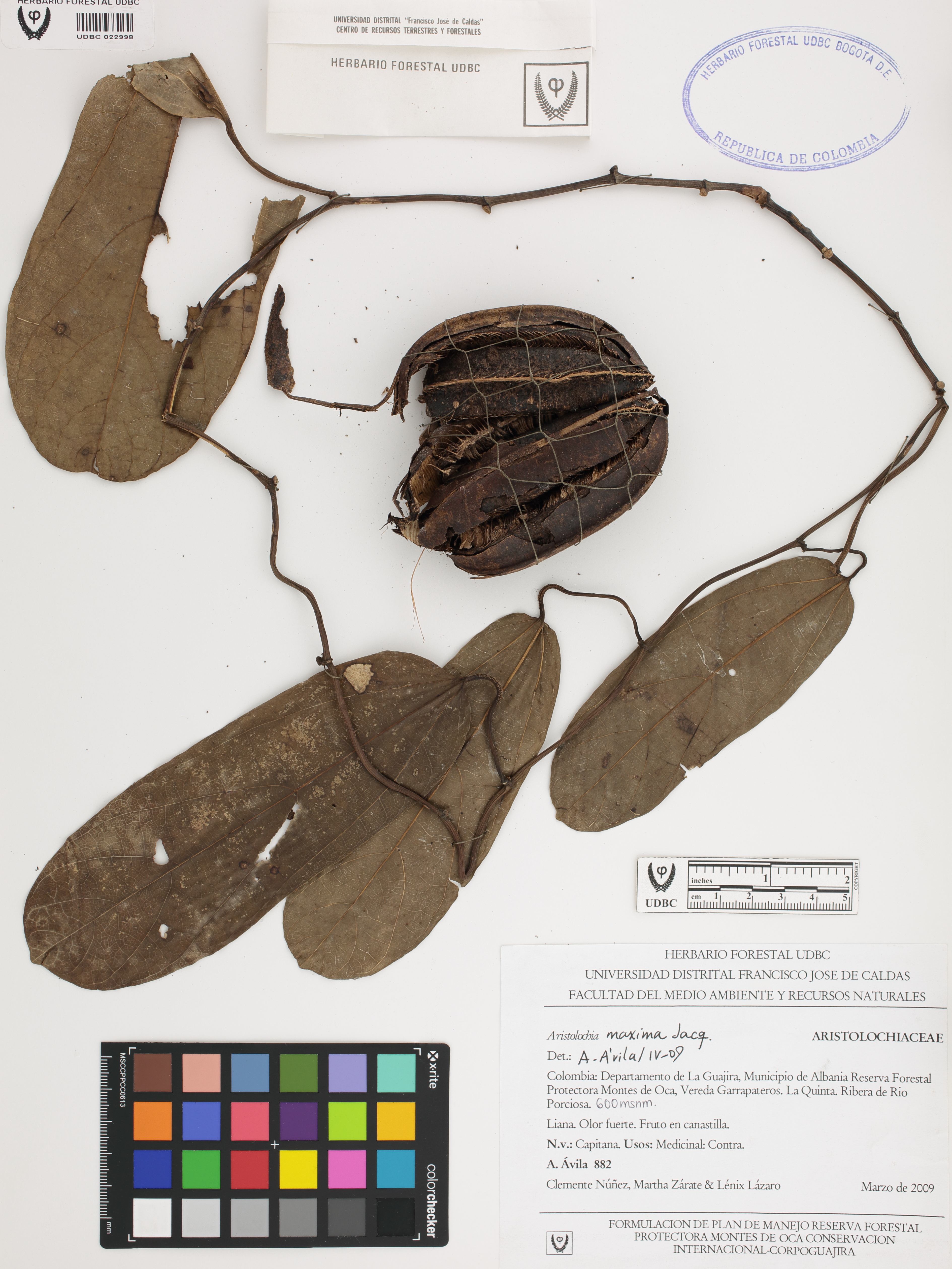 | dc.description | Fotografía del ejemplar Ávila, A. 882, determinado como Aristolochia maxima en el año 2009 | |