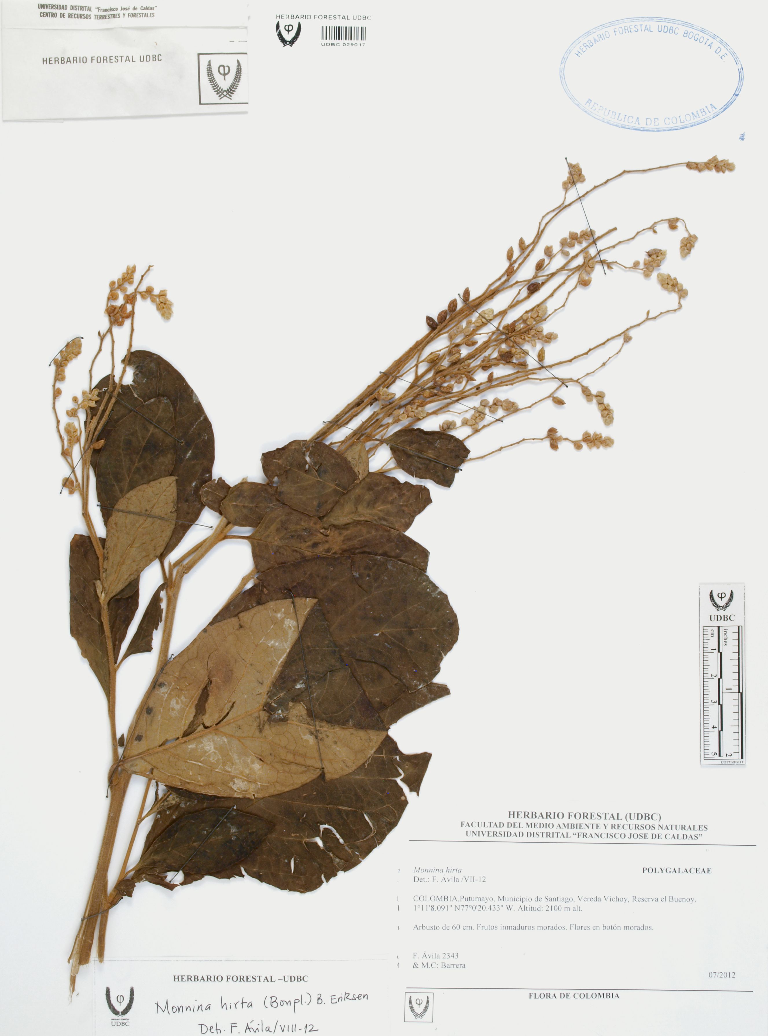 Fotografía del ejemplar Ávila, F. 2343, determinado como Monnina hirta en el año 2012