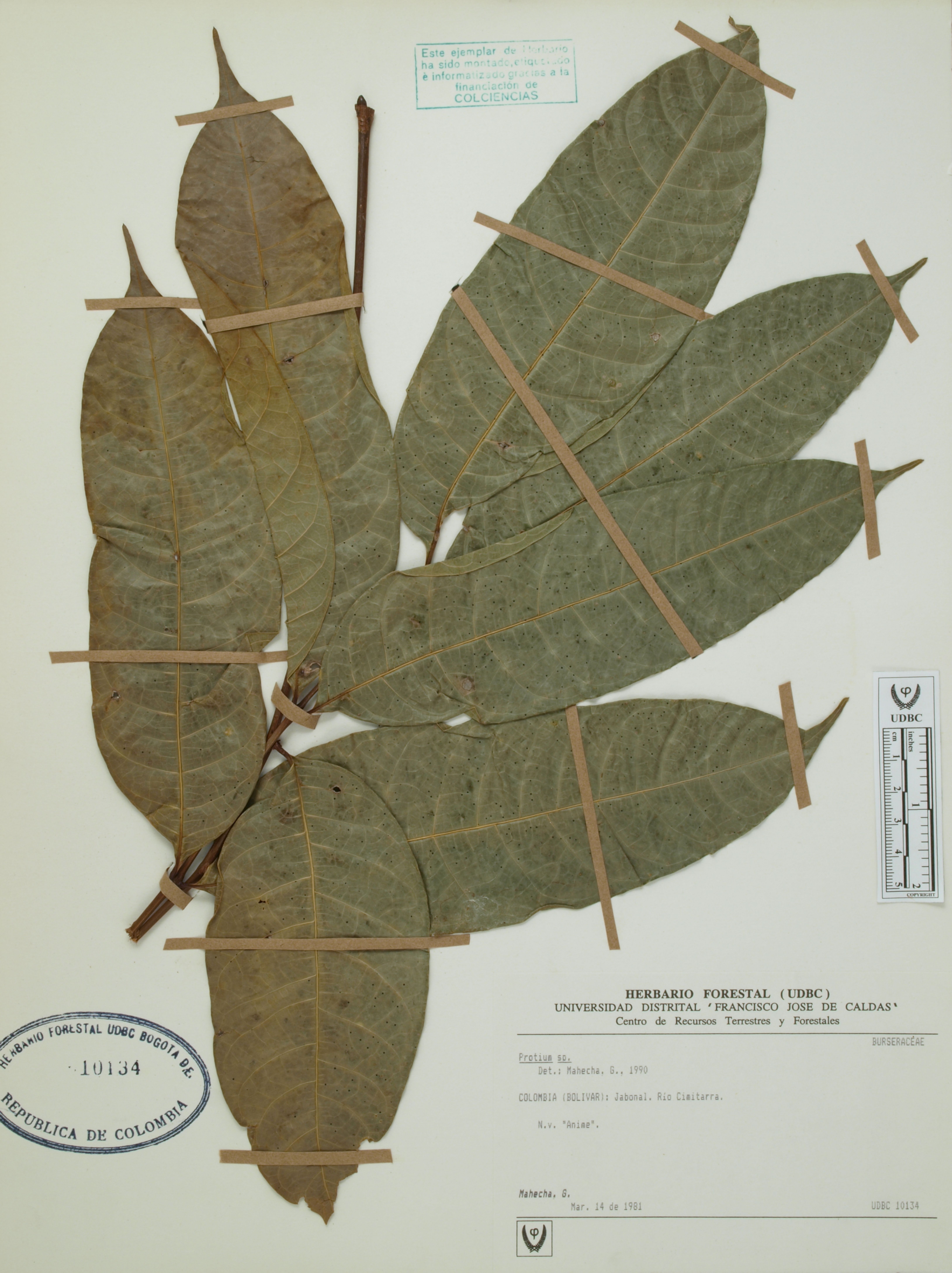 Fotografía del ejemplar Mahecha, G., determinado como Dacryodes amplectans en el año 2022