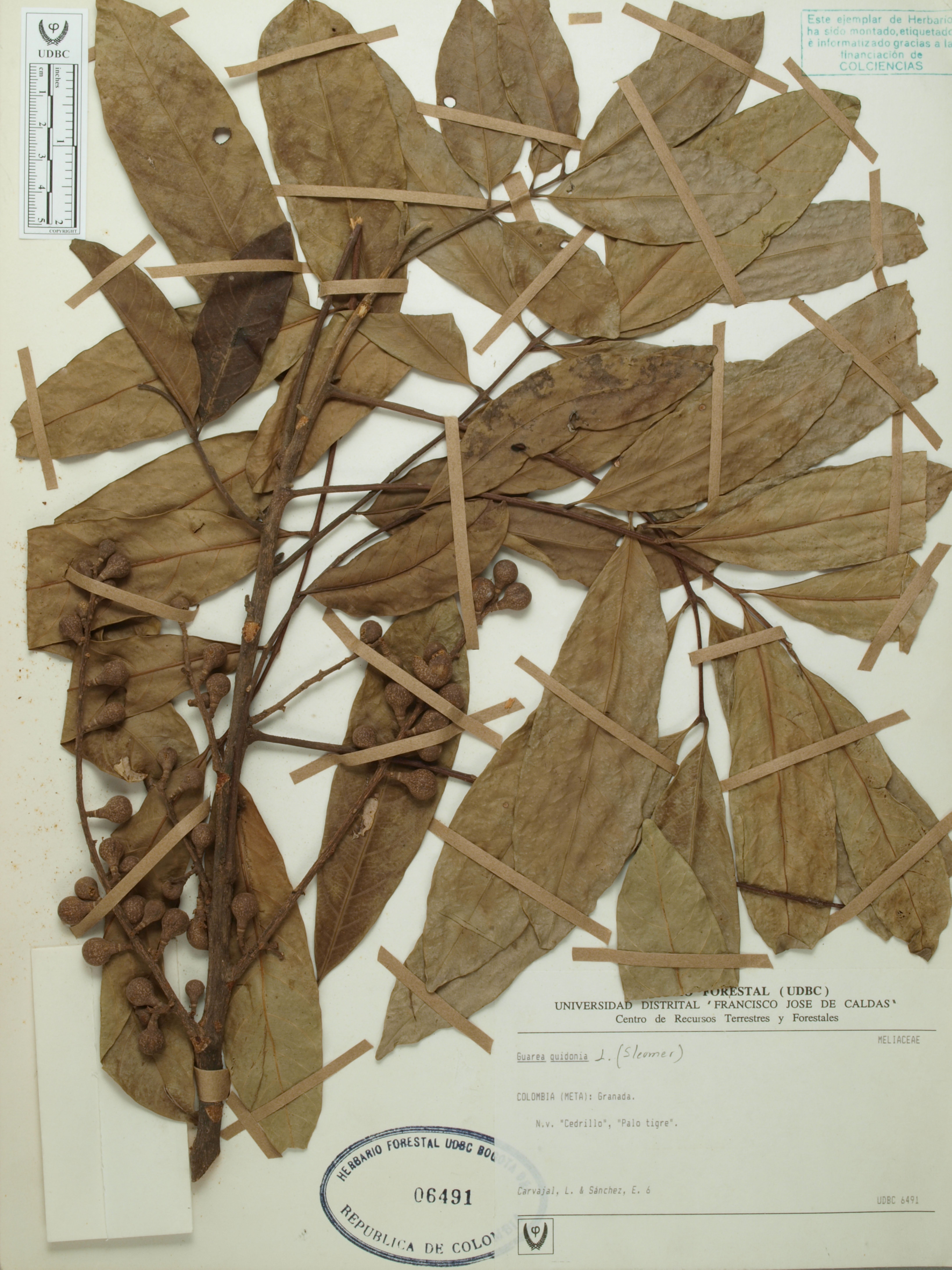 Fotografía del ejemplar Carvajal, L. 6, determinado como Guarea guidonia